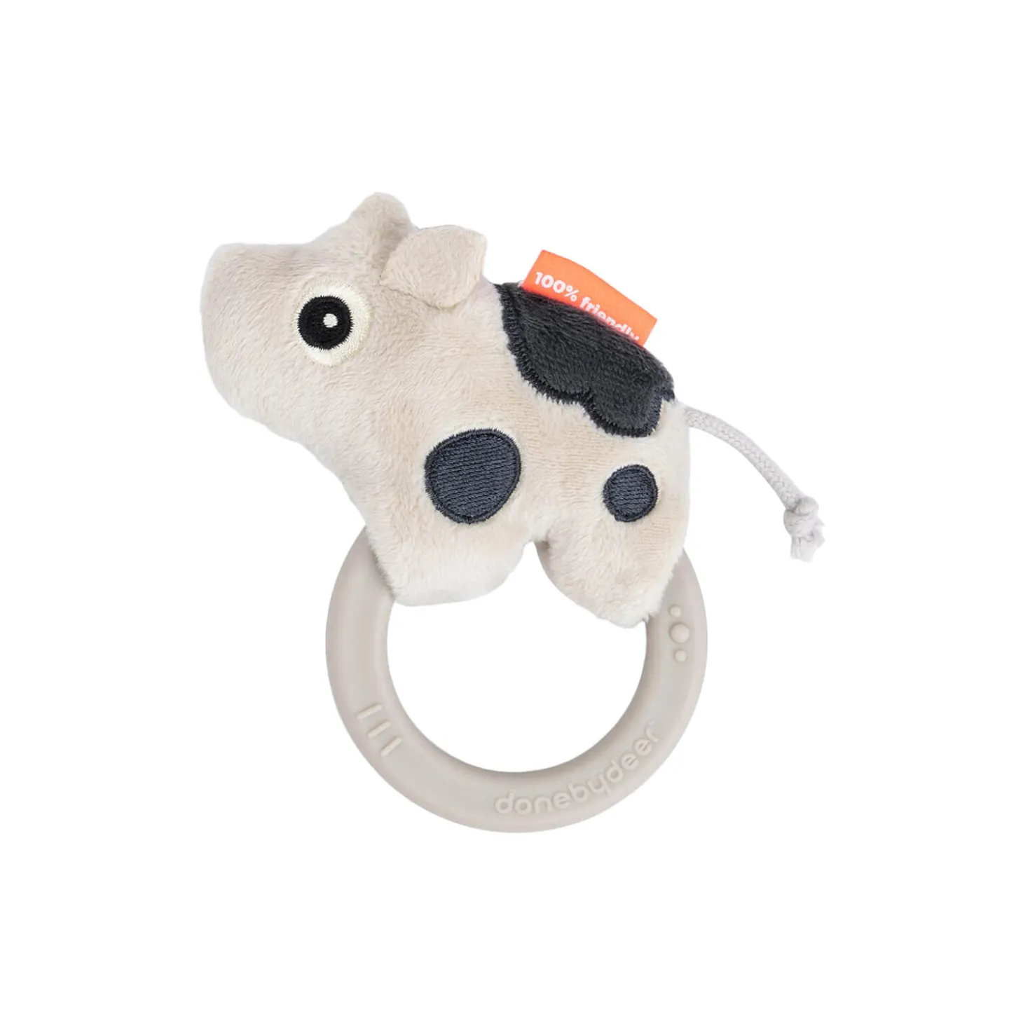 • Sensoriske elementer som en rangle og forskellige teksturer vil stimulere dit barns hørelse og taktile sans• Ringen gør det nemt for de små fingre at holde fast og aktivere lyden• Bideringen er god til at stimulere og berolige kløende tandkød• Dotti i fin sandfarve med kontrastfarver for visuel stimulering