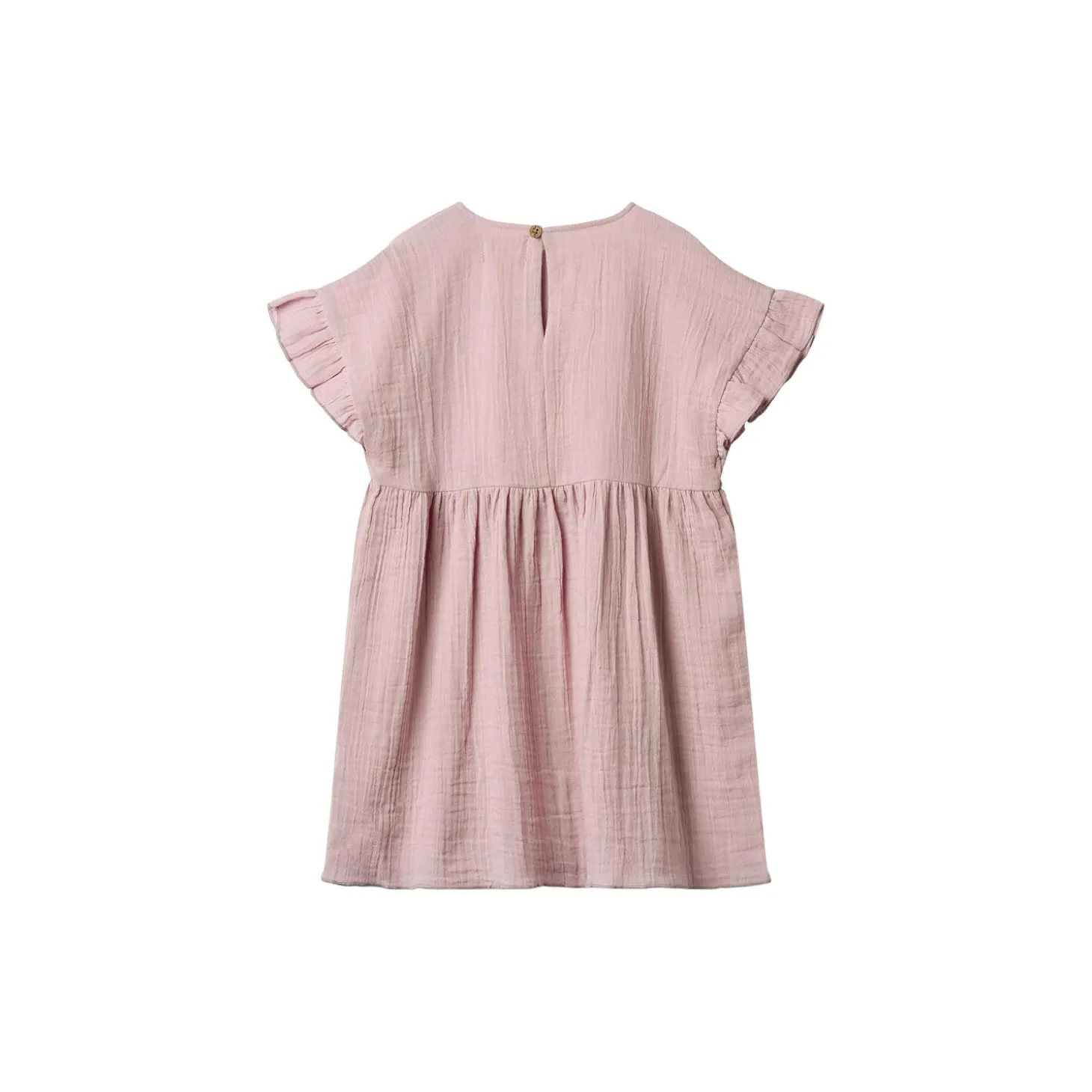 Wheat’s sweet dresses are easy and comfortable for your child to wear and play in. The dress has a flattering cutline with gatherings, which gives the dress some lovely volume. It has button closure at the back to make it easier for your child to get dressed. The dress is easy to style with one of our sandals to complete the cute summer look or you can add some leggings and a knit on the colder days.