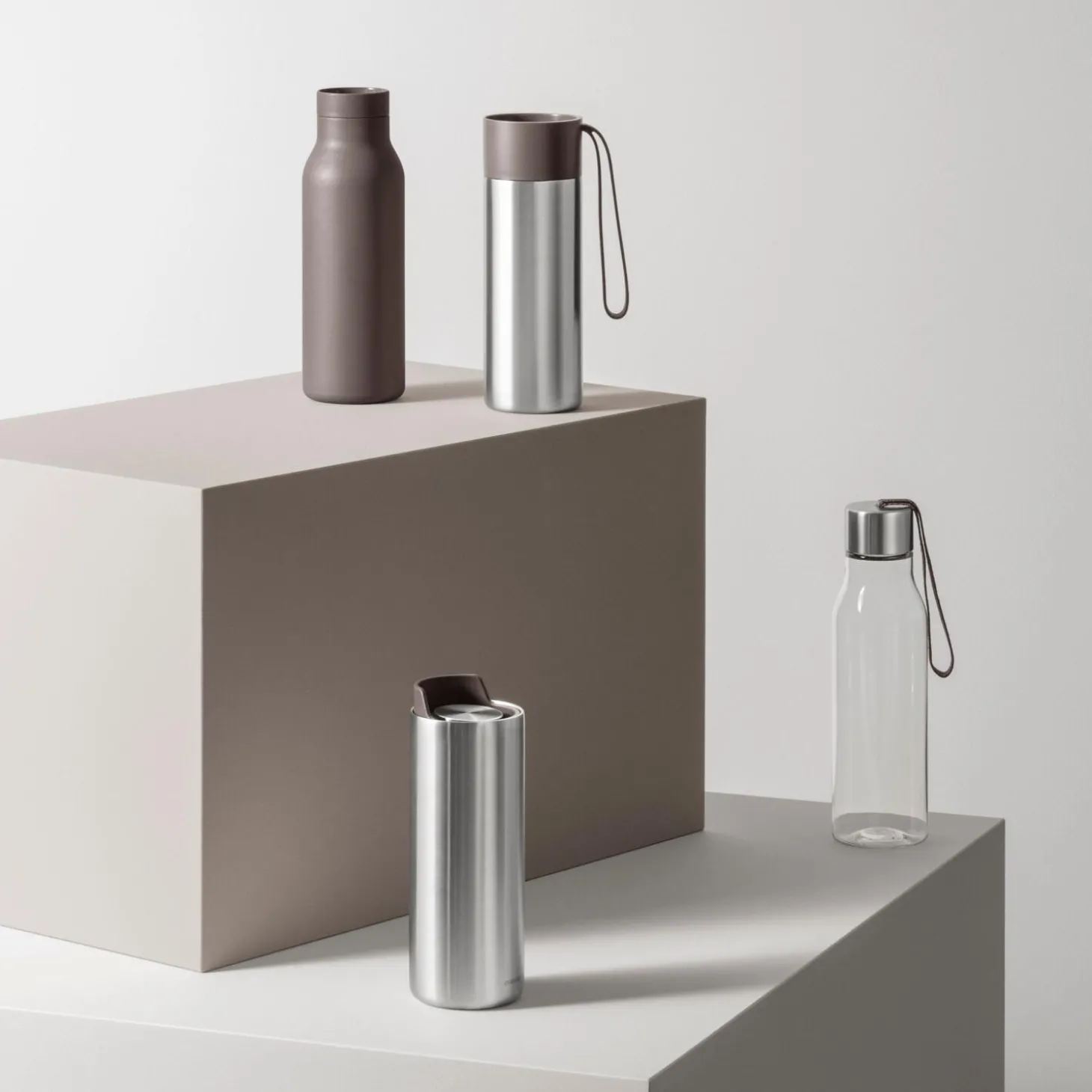 Eva Solo Drikkeflaske er velegnet som den vandflaske, der altid er lige ved hånden. I tasken, på kontoret og i fritiden. Den er 100 % tæt, kan fyldes igen og igen og belaster derfor ikke miljøet. Drikkeflasken er fremstillet i BPA-fri plast, hvilket betyder at den er fri for Bispanol, phthalater og tungmetaller. Selve plastflasken tåler maskinopvask. Skruelåget skal vaskes i hånden. Indeholder 0,5 liter.