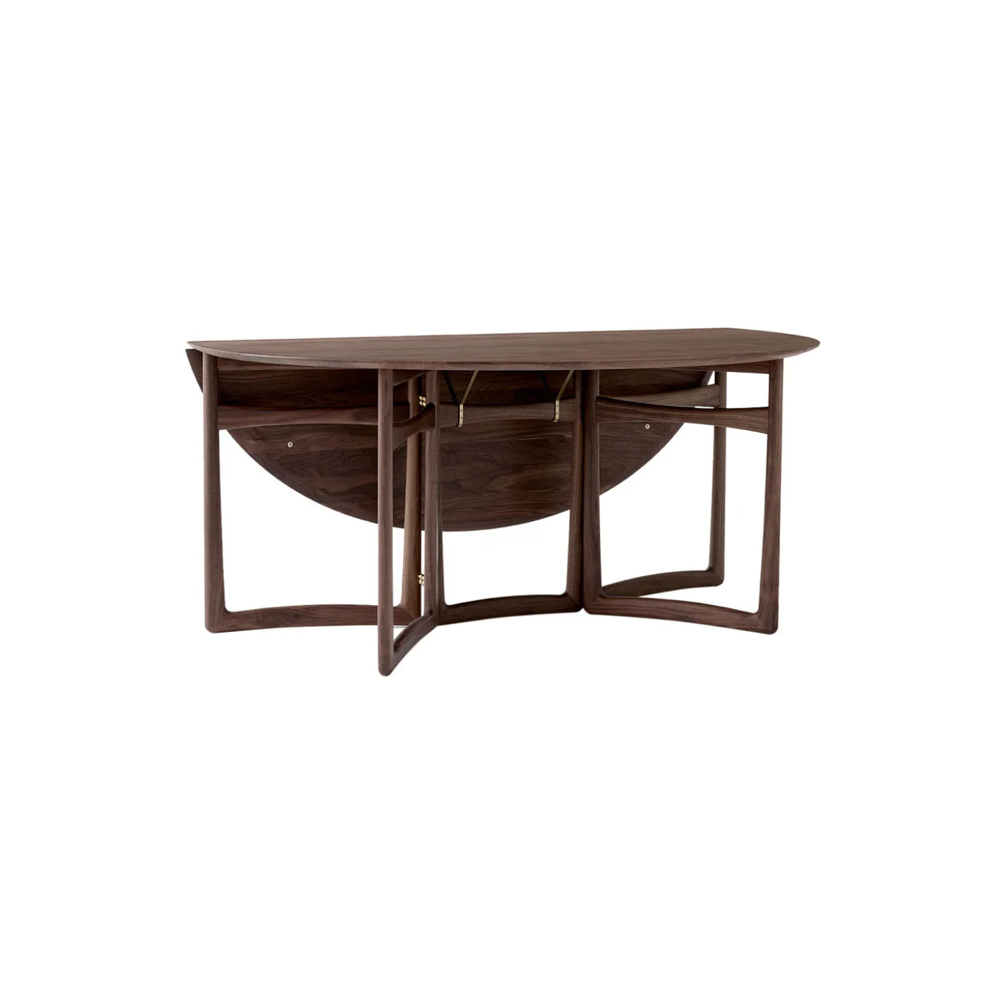 Drop Leaf HM6 spisebord i olieret valnød og messing fra &Tradition. Farve: olieret valnød. Mål: H: 73 x B: 163 x D: 142 cm. Design: Hvidt & Mølgaard.