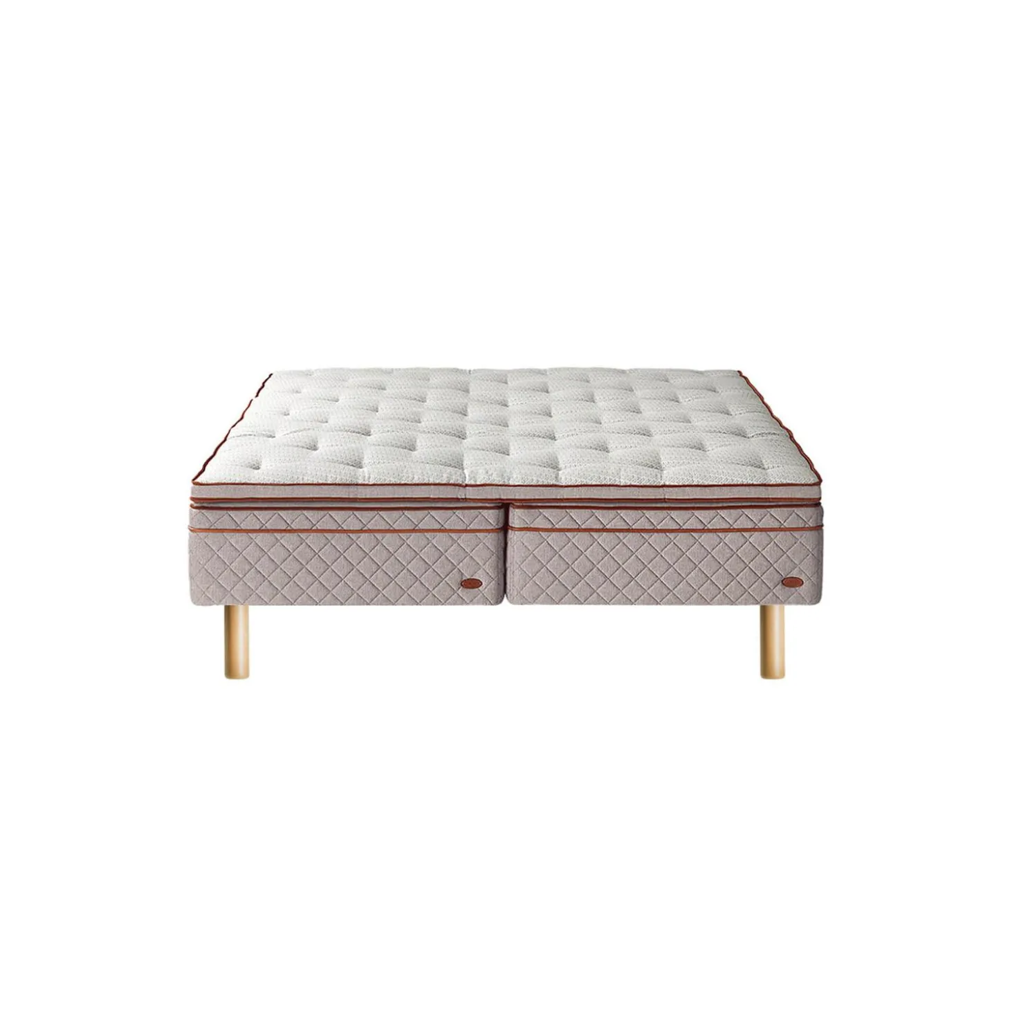 DUX 3003 dobbeltseng med DUX Xupport Plus topmadras og ben i eg fra DUX. Farve: hvid/brun. Mål: H: 35 x L: 200 x B: 180 cm.