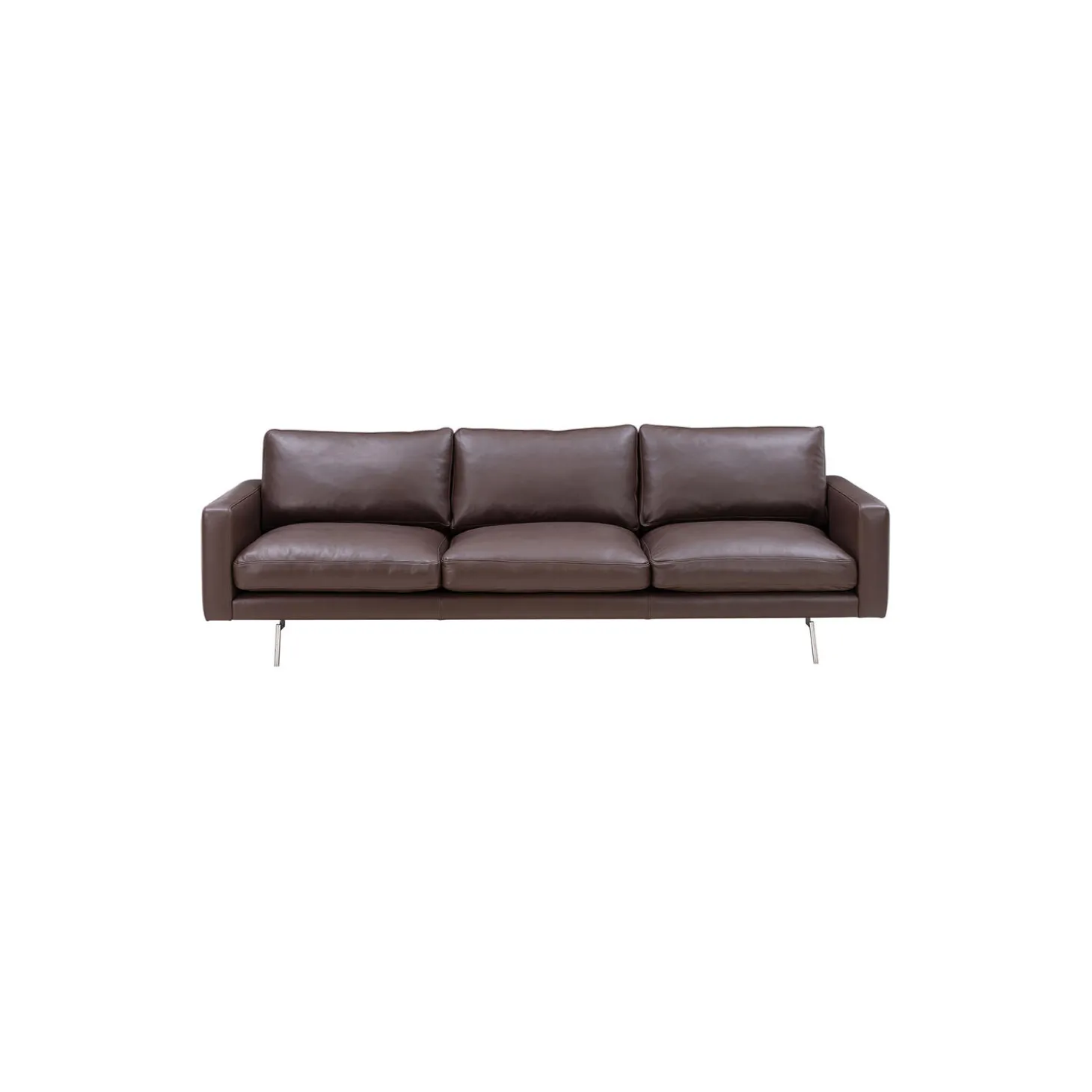 Edge V1 3 pers. sofa med polstring i anilinlæder og stel i pulverlakeret stål fra Wendelbo. Mål: H: 78 x L: 240 x D: 100 cm. Siddehøjde: 40 cm. Design: Lars Wendelbo.