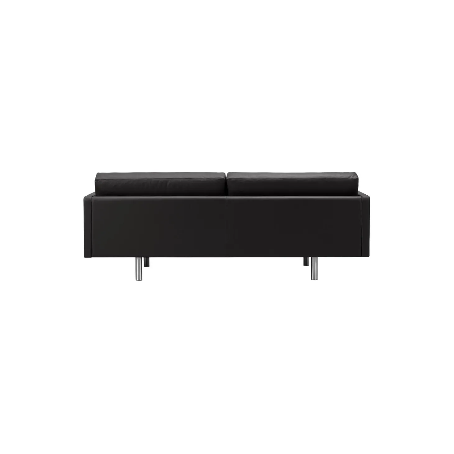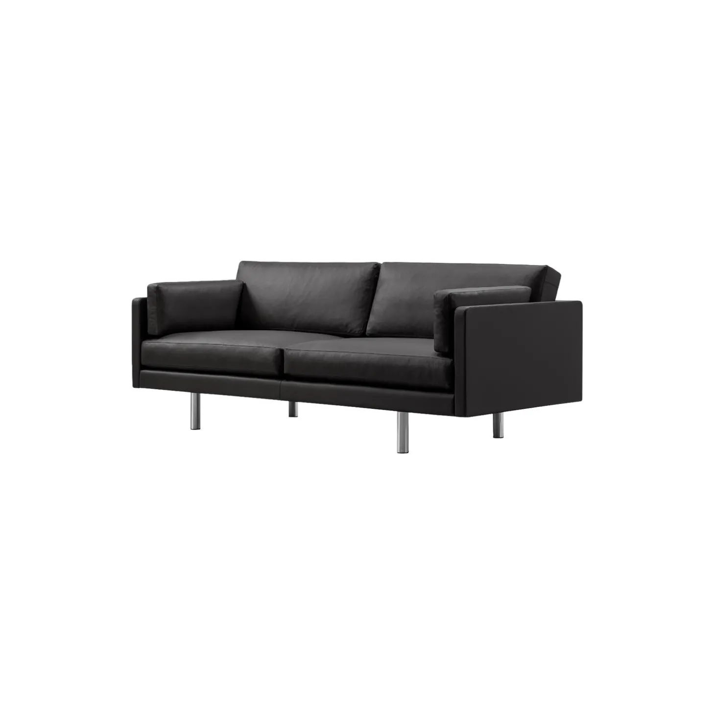 EJ220 2 pers. sofa med polstring i Omni 301 semianilinlæder med stel i børstet krom fra Fredericia. Farve: black. Mål: H: 73 x L: 212 x D: 86 cm. Siddehøjde: 42 cm. Design: Erik Jørgensen.