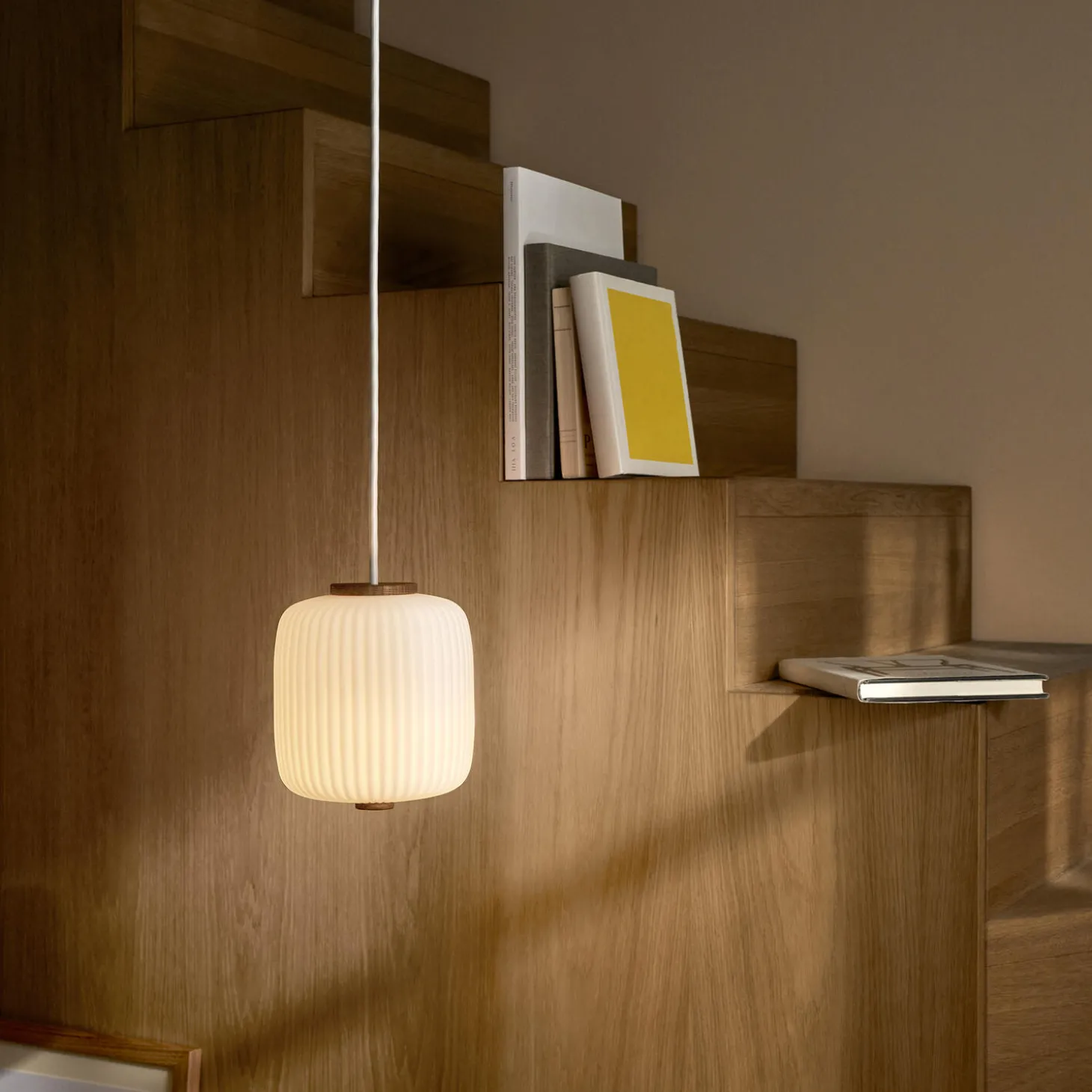 EK61 Opal pendlen, der blev designet i 1961, men aldrig har været sat i produktion, lanceres nu i glas og træ. Den elegante og underspillede pendel, som er designet af Esben Klint, søn af den prominente danske designer Kaare Klint, skulle oprindeligt have været i plisseret plast. Men eftersom designet var for kompliceret at sætte i produktion på daværende tidspunkt, forblev det i familiens arkiver – indtil i dag. Den moderne variant har en plisseret, elliptisk form og er fremstillet i opalt mundblæst glas. De karakteristiske detaljer i eg, der leder tankerne hen på traditionelle kinesiske lanterner, drejes omhyggeligt og finpudses i hånden, så der opstår et klassisk udtryk. EK61 fås i tre størrelser og udsender et blødt, indirekte lys takket være den nøje gennemtænkte kombination af klassiske materialer.