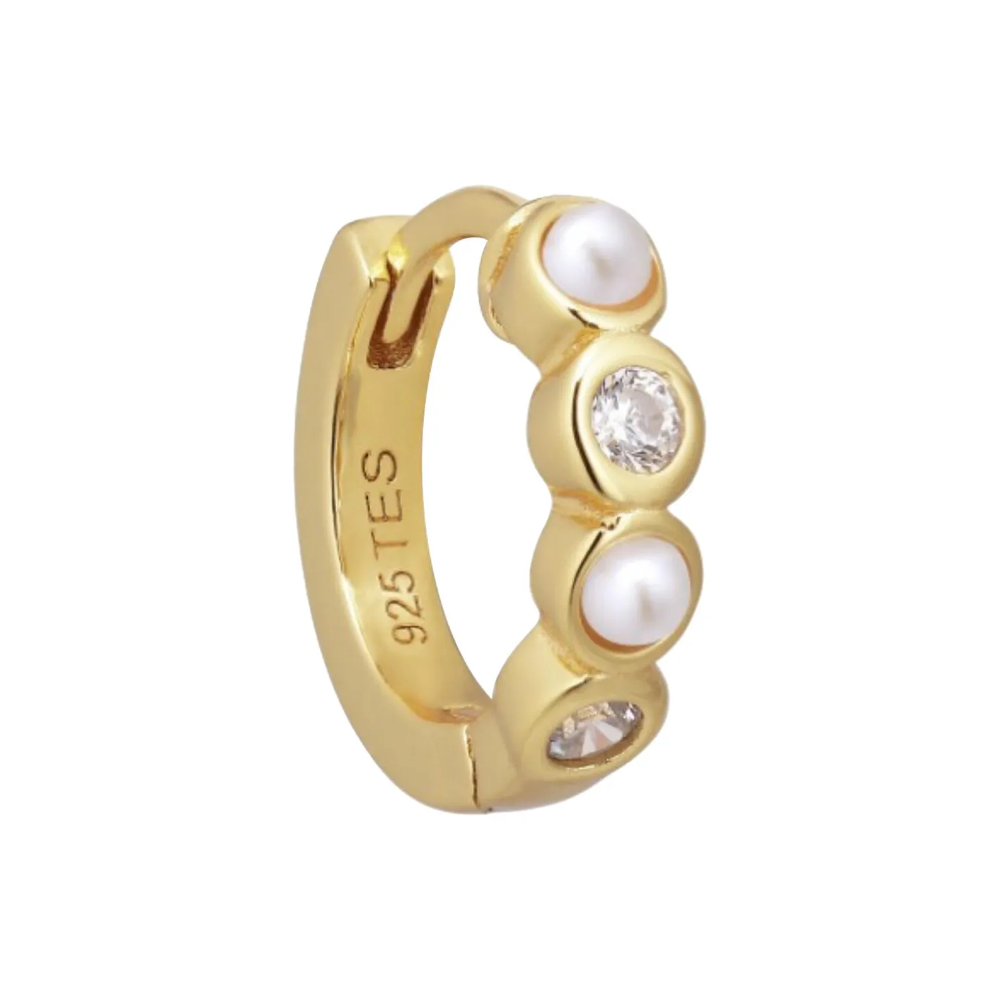 Lille huggie ørering med shell perler og klare sten. Sælges enkeltvis.