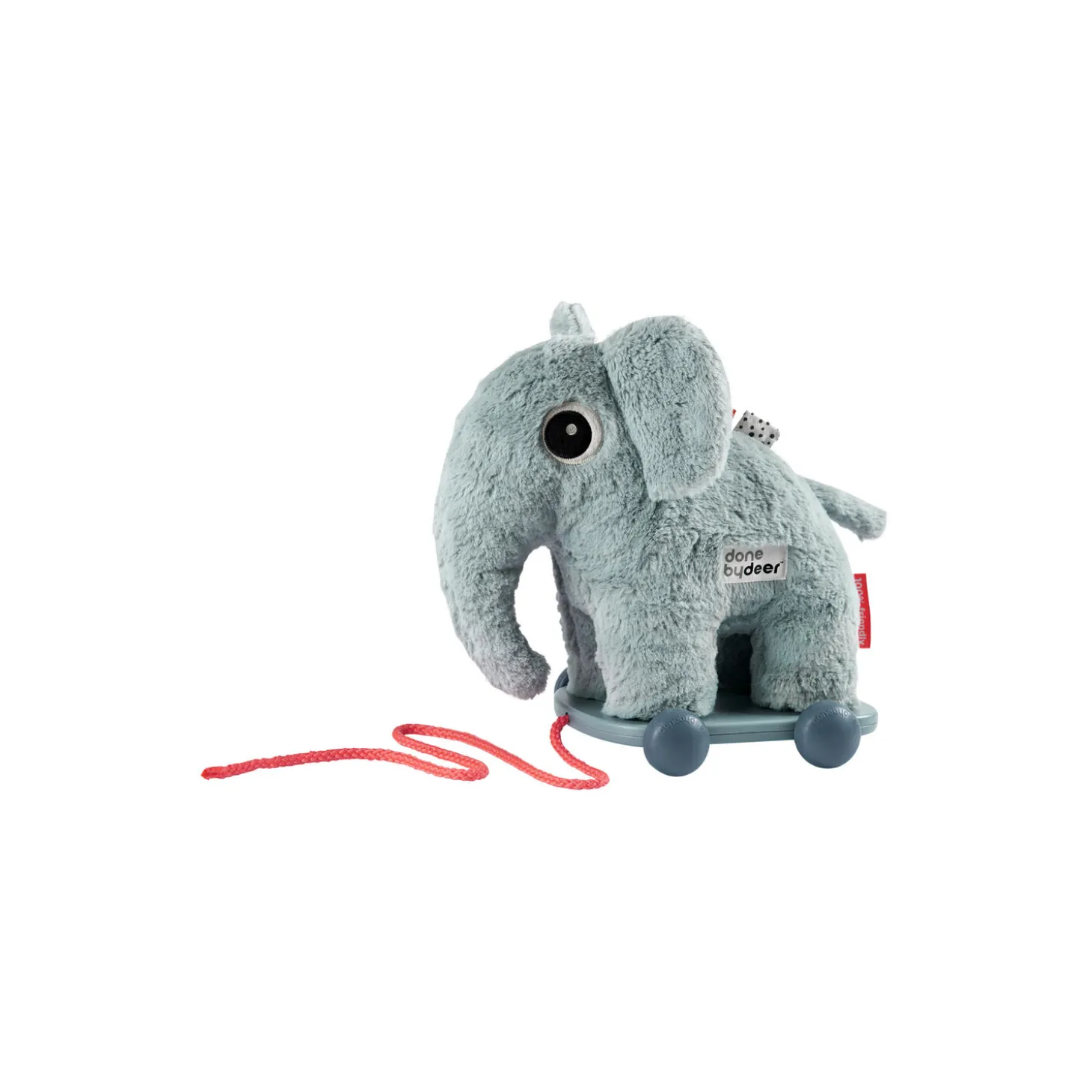 Elphee trækdyr i 100% polyester med fyld af polyesterfibre og vogn i plastik fra Done By Deer. Farve: blå. Mål: H: 28 x L: 28 x B: 18 cm. Design: Done By Deer.