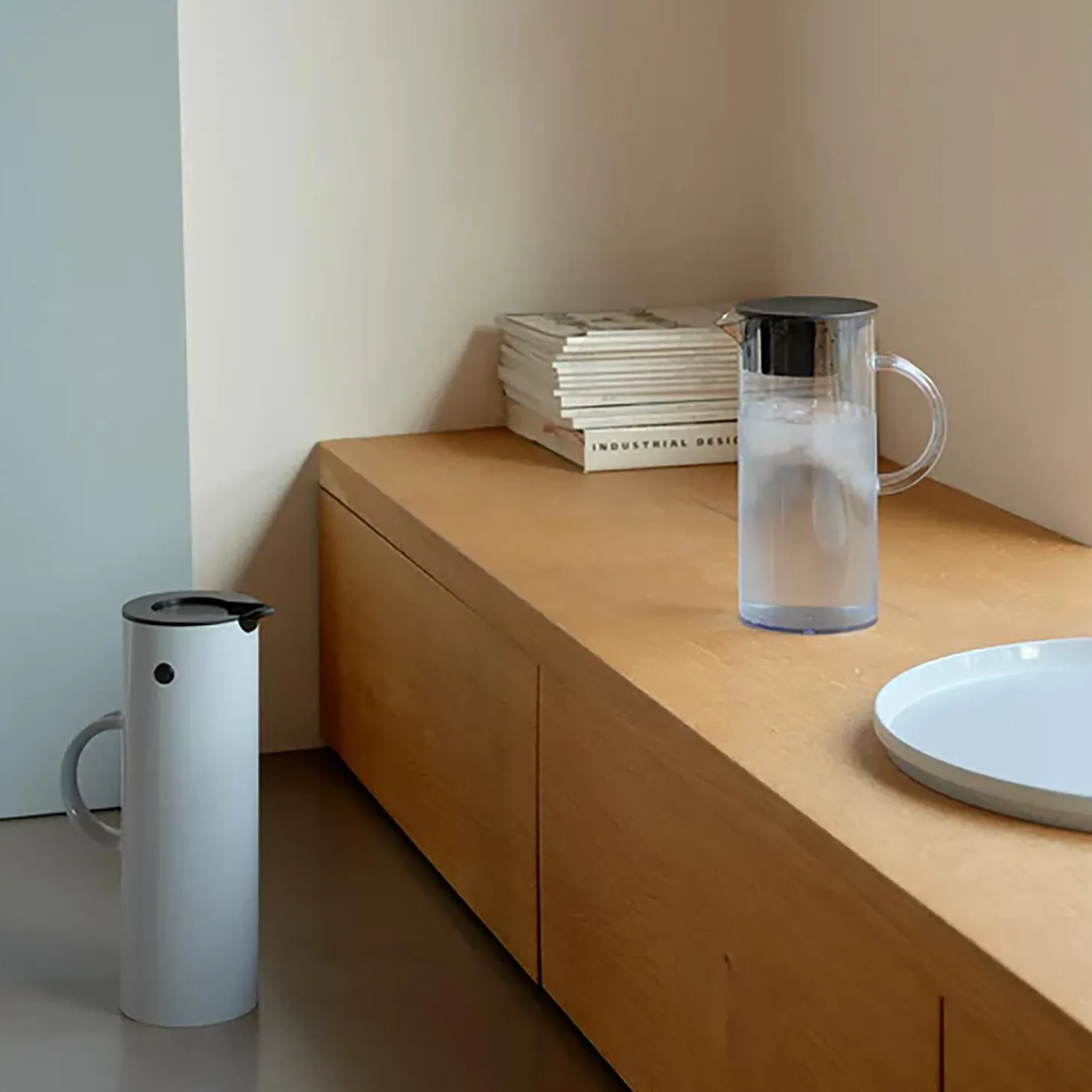 EM kanden med låg er skabt af Erik Magnussens over hans klassiske streger til Steltons størst design-ikon, EM77 termokanden. Kanden indeholder 1,5 l. og er fremstillet i BPA- und Phthalatfri ABS plast. Den passer køleskabet og kan både bruges til frisk juice og koldt vand.