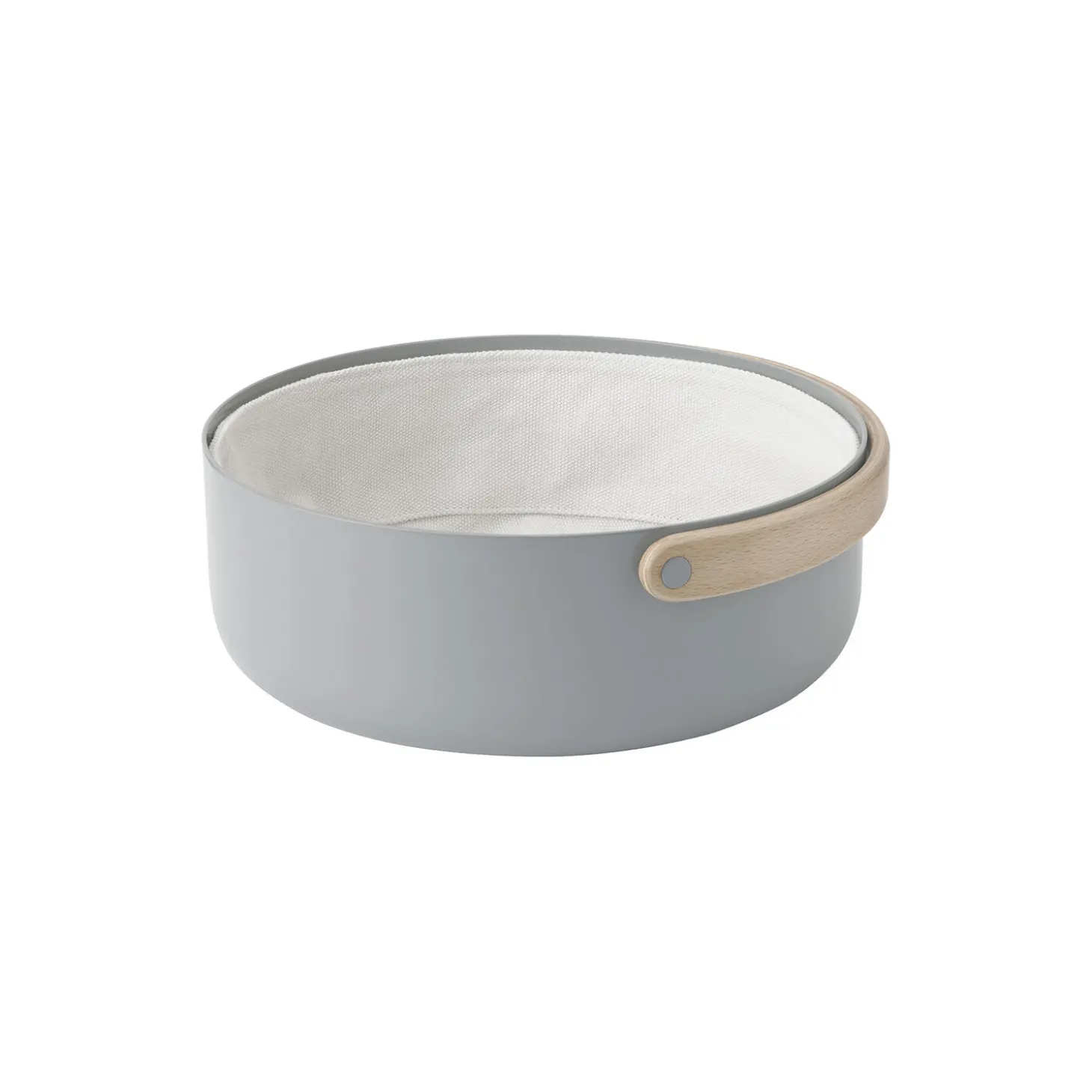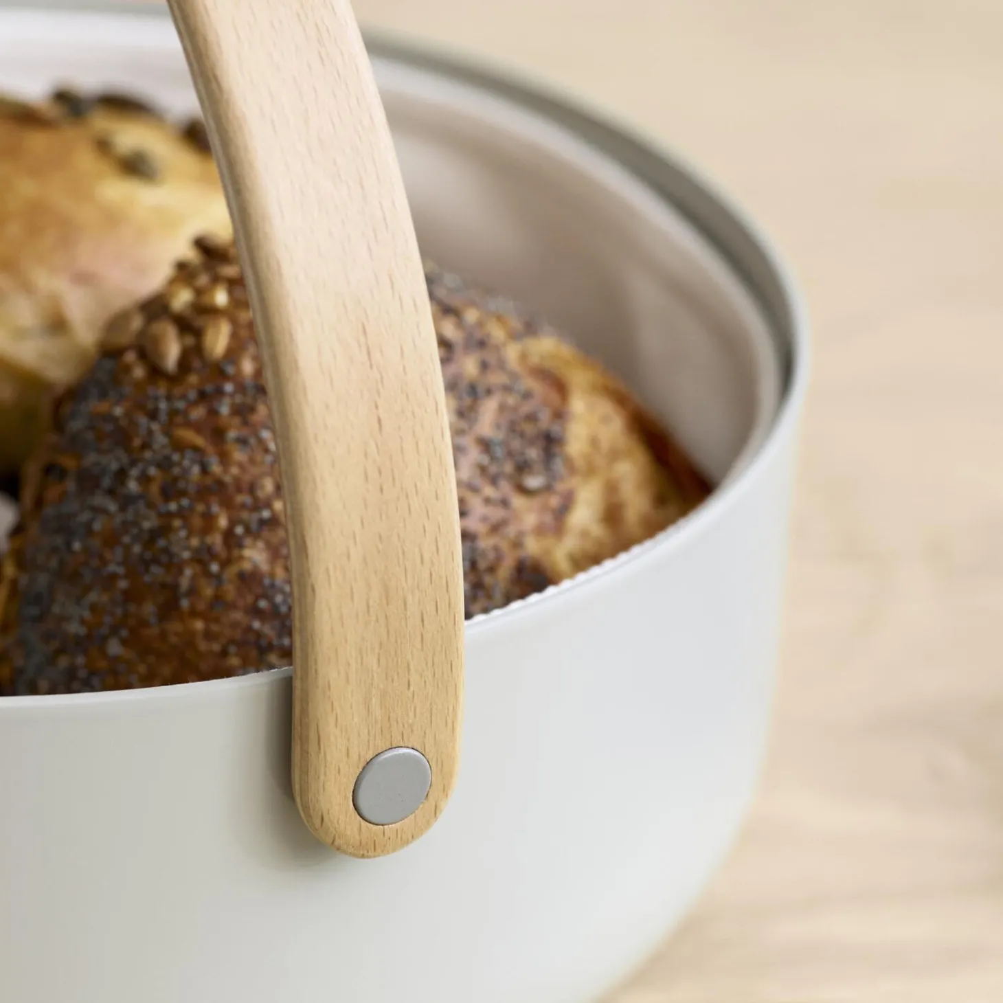 Emma brødkurven bygger på samme designtanker som resten af Emma-serien med de rene linjer, kombinationen af stål og formspændt bøgetræ. En designfilosofi og et materialevalg der fint refererer til dansk designtradition fra 1950’erne. Når brødkurven står på bordet, lægger det formspændte håndtag i bøg sig tæt omkring metalkurven og indgår som en naturlig del af designet. Håndtaget løftes let op, når kurven skal sendes rundt om bordet eller transporteres fra køkken til spisebord. Inderst består brødkurven af en perfekt tilpasset stofpose i 100 % OEKO-TEX bomuld. Den gør det nemt at tømme kurven for krummer og tåler en tur i vaskemaskinen, hvis den bliver for nudset. Emma brødkurven kan også bruges til frugt; den må max fyldes med en vægt svarende til 3 kg.