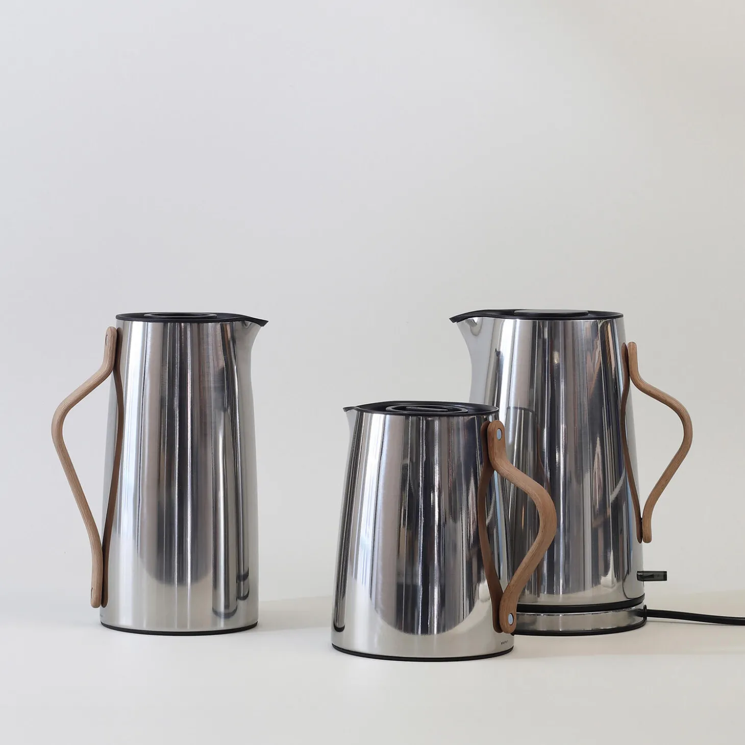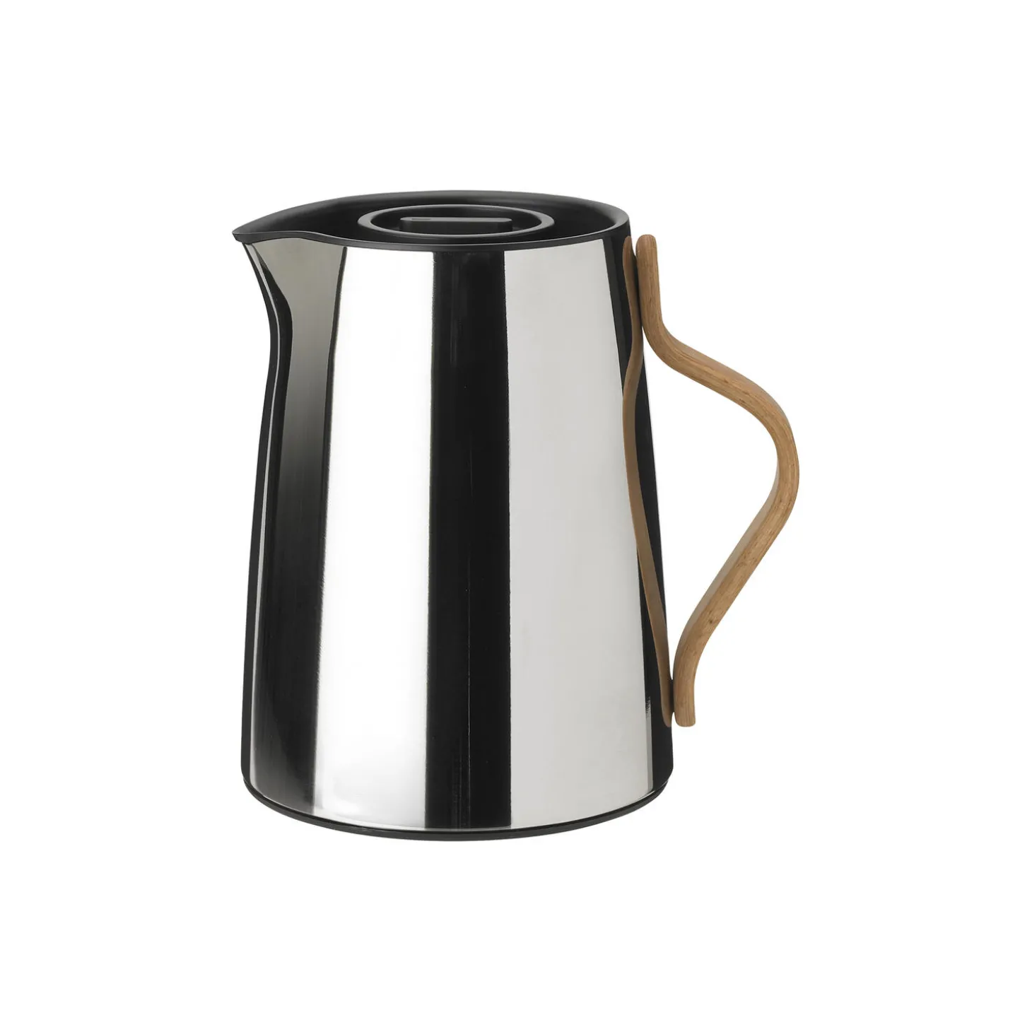 Den revolutionerende Emma vakuumtekande, fremstillet i rent rustfrit stål med stålsats og indbygget tefilter, sætter nye standarder for tebrygning. Et enkelt twist lukker det smarte filter og stopper bryggeprocessen, når teen har opnået den perfekte styrke. Den stilrene 1-liters kande, designet af HolmbäckNordenoft, har en elegant ståloverflade kombineret med et skandinavisk bøgetræshåndtag for et tidløst og moderne udtryk.