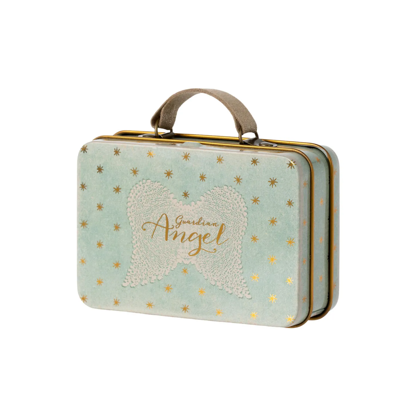Skytsengle gør deres bedste for at beskytte og passe på de små. Denne skytsengel kommer i en mintfarvet metalkuffert.