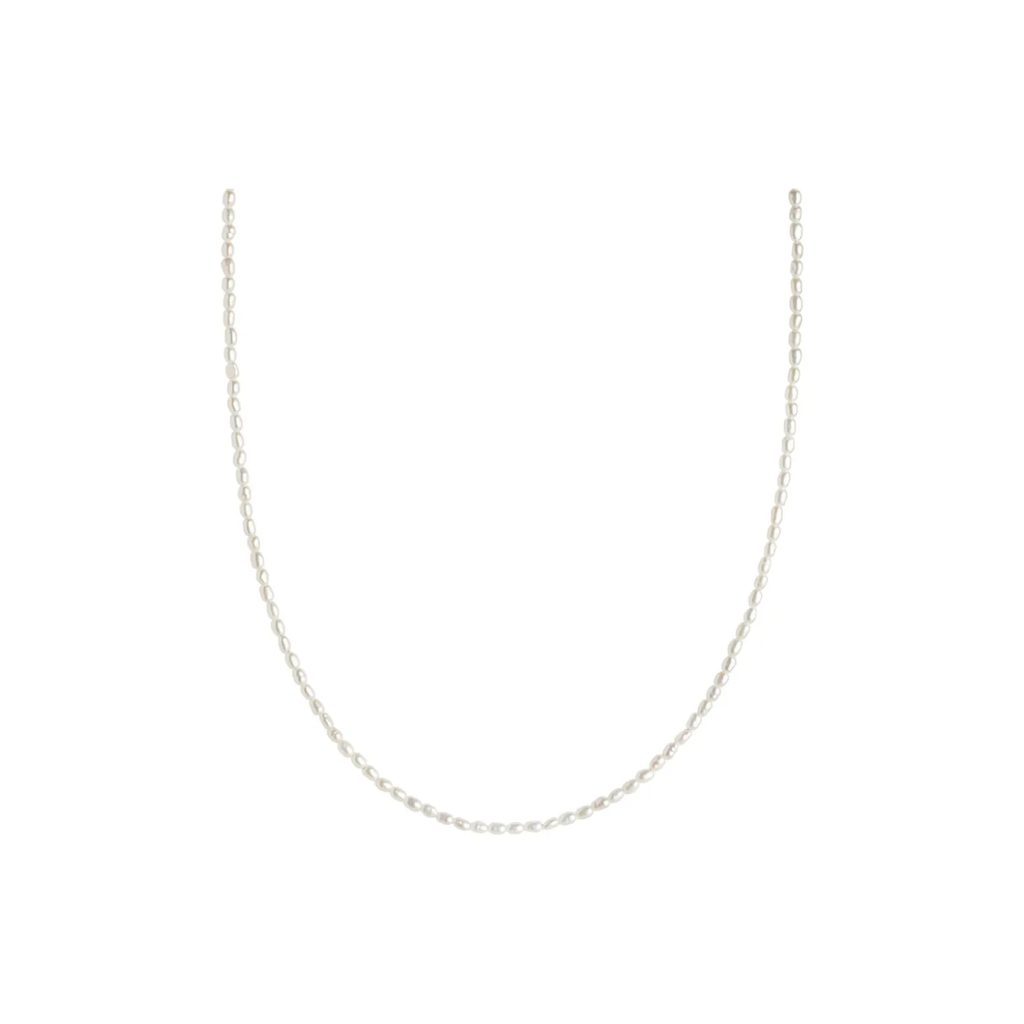 Vores Erna Halskæde er en dejlig perlehalskæde med små, skønne, barokke ferskvandsperler. Erna er en enorm klædelig og sofistikeret halskæde, når du bruger den alene, og står virkelig fint frem på halsen. Erna kan også være en rolig tilføjelse til dine andre halskæder, da den er god, både at kombinere med farverige emalje- eller stenhalskæder, og kæder i guld eller sølv. Erna findes også som armbånd.