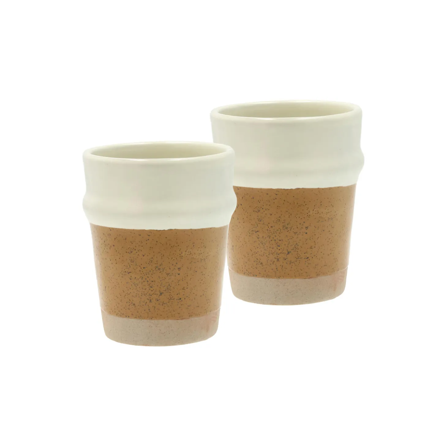 2 porcelænskrus, 35 cl, med en smuk, reaktiv glasur. De har et fantastisk udseende med en unik overflade, da hvert enkelt produkt er hånddekoreret, og derfor kan farve og overflade variere.