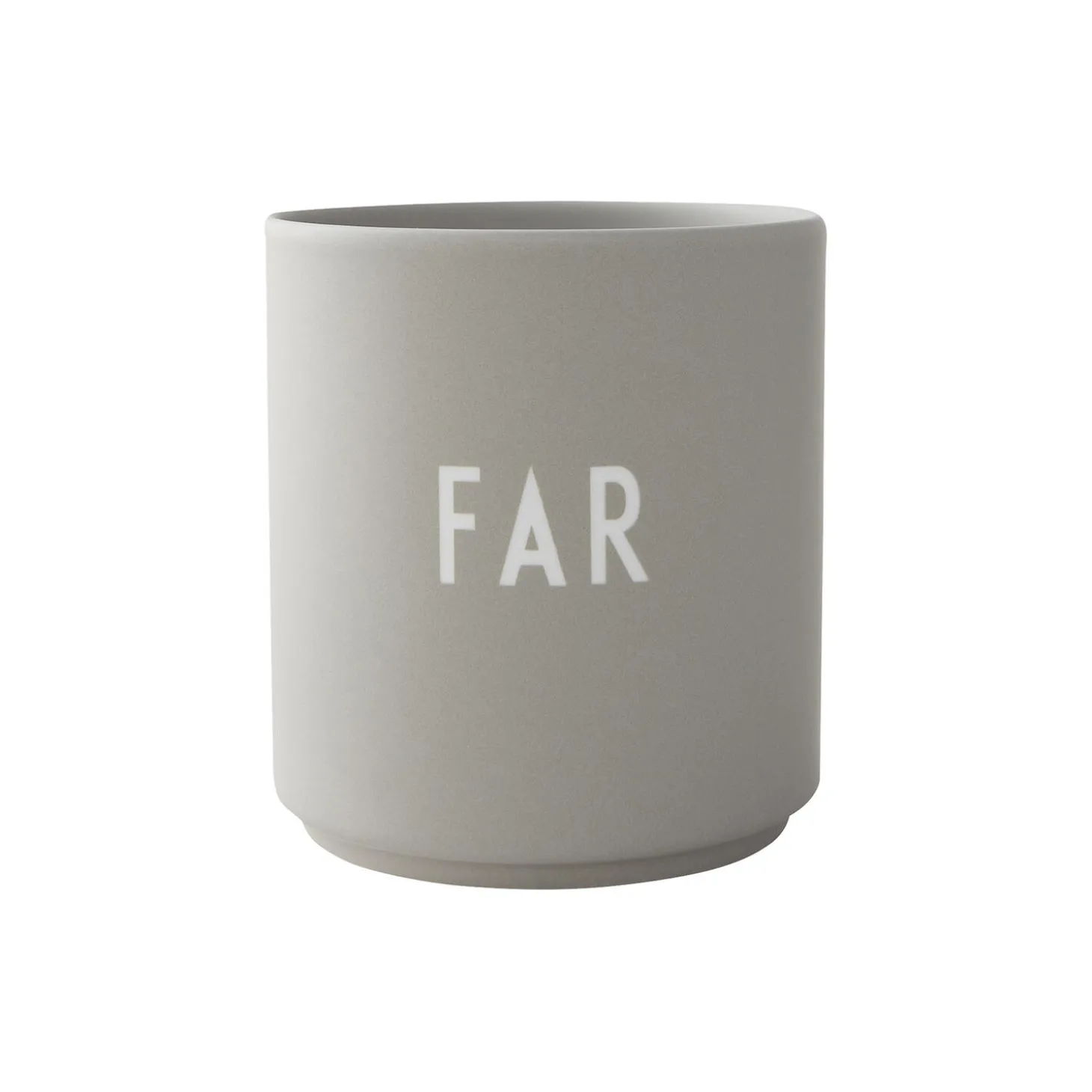 Favoritkopperne – den bedste gaveide! De superpopulære kopper i lækre farver, designet i den fineste ultra-mat glaserede porcelænskvalitet med skønne ord indgraveret på fronten. Den perfekte gaveide til dem, du holder af, til fødselsdag, barsel, dimission, mors dag, fars dag, konfirmation og mange andre anledninger. Dimensioner: H. 8,5 cm. D. 8 cm. Materiale: Mat glaseret Fine Bone China, laserindgraverede bogstaver. Plejeanvisning: Tåler opvaskemaskine. Typografi: Arne Jacobsens Vintage ABC. Tilbehør til kopper (sælges seperat): Blomsterholder, stearinlysindsats, trælåg og vægophæng.