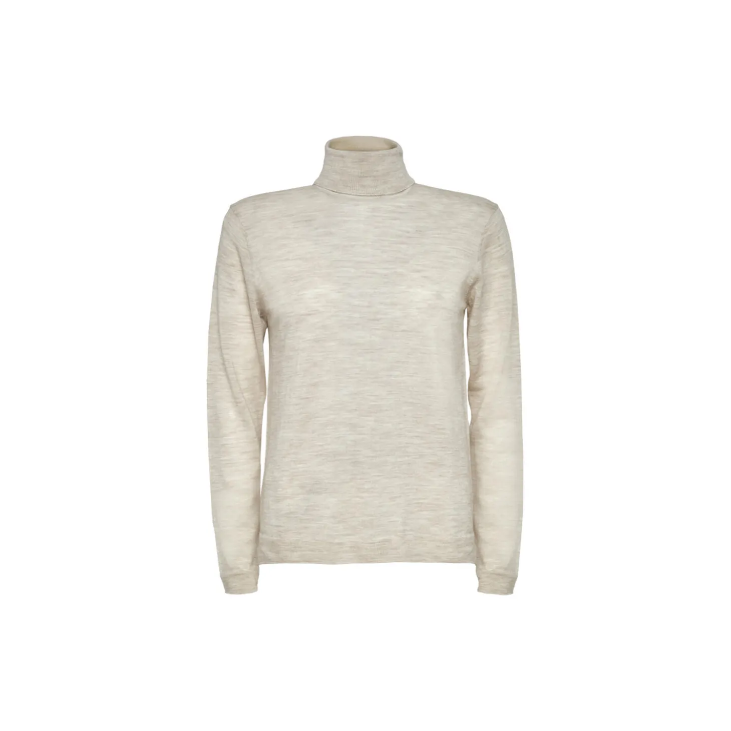 High-neck sweater with long sleeve. Vertical line detail on centre back. Special processing to avoid peeling. Fits true to size