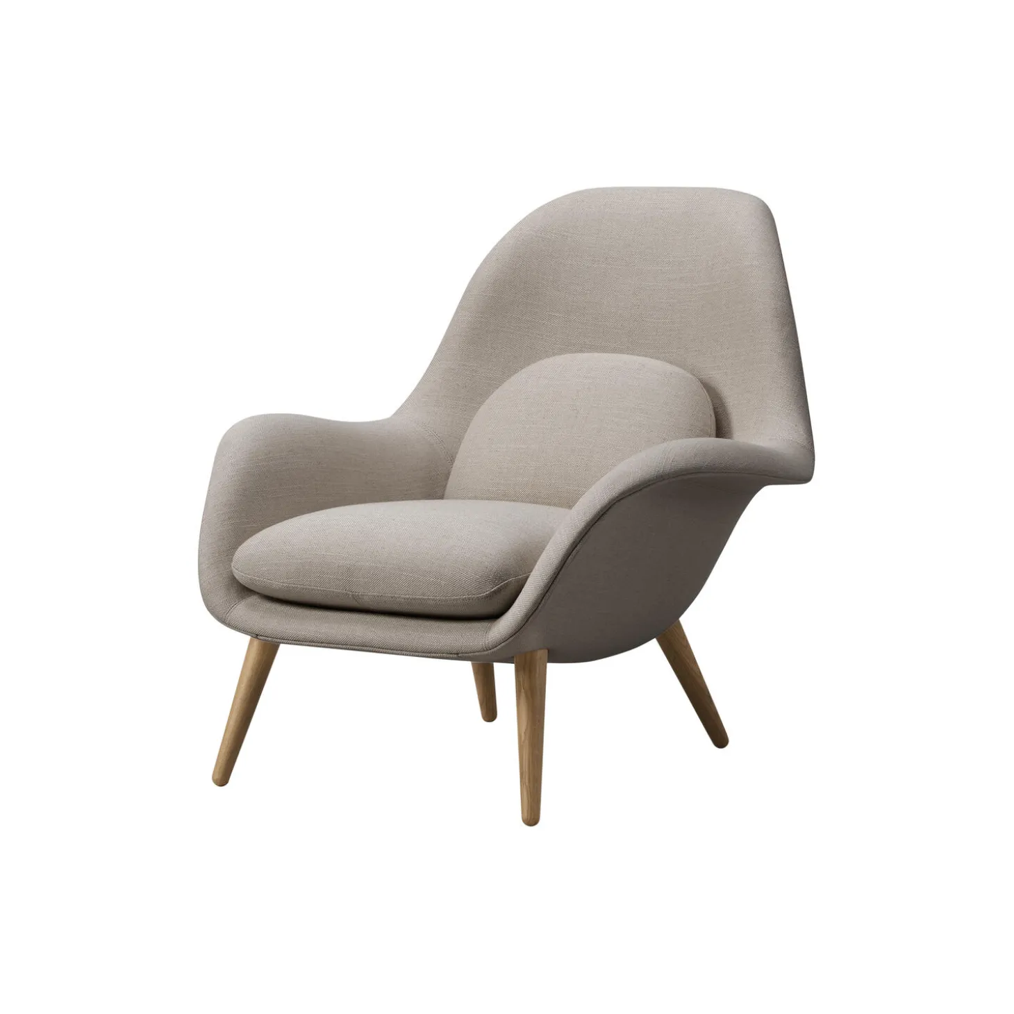 FF1770 Swoon Lounge Chair fuldpolsteret i Sunniva 717 tekstil og stel i lakeret eg fra Fredericia. Farve: Sunniva 717/lakeret eg. Mål: H: 83,5 x B: 90 x D: 88,5 cm. Siddehøjde: 36 cm. Design: Space Copenhagen.