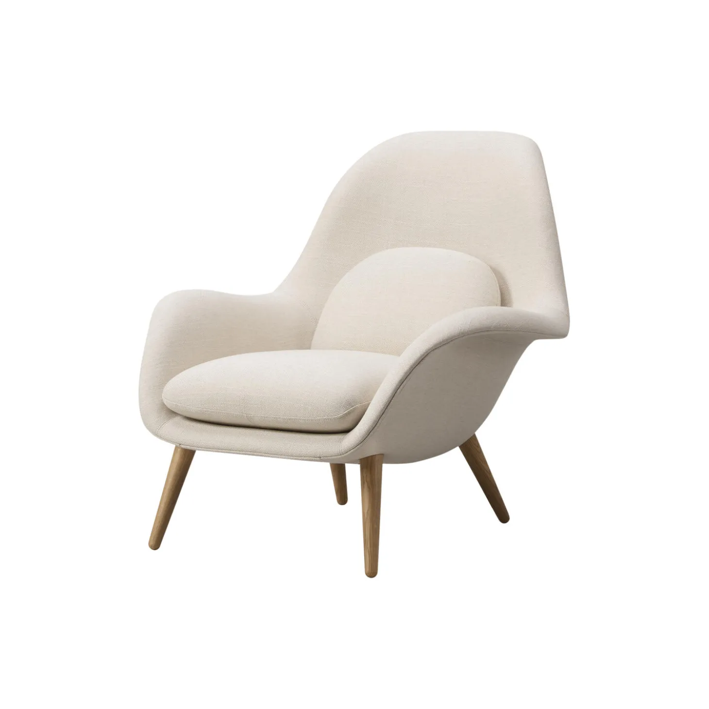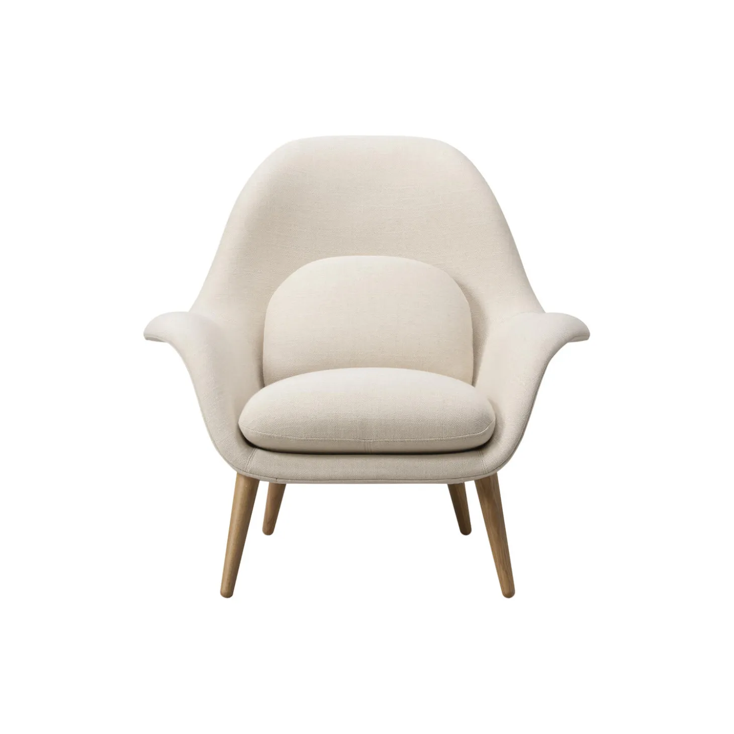 FF1770 Swoon Lounge Chair fuldpolsteret i Sunniva 811 tekstil og stel i lakeret eg fra Fredericia. Farve: Sunniva 811/lakeret eg. Mål: H: 83,5 x B: 90 x D: 88,5 cm. Siddehøjde: 36 cm. Design: Space Copenhagen.
