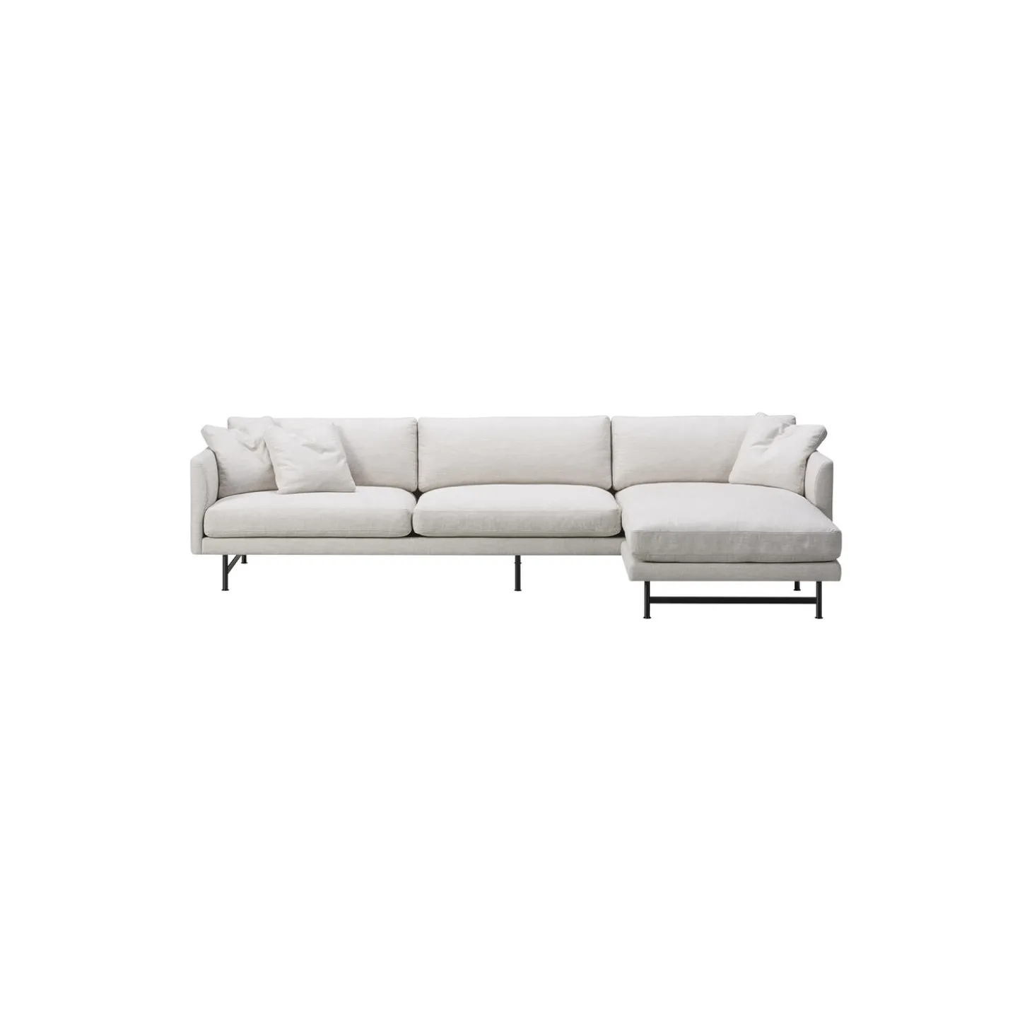 FF5655 95 3 pers. sofa chaise med polstring i Ruskin 10 tekstil og stel i pulverlakeret stål fra Fredericia. Farve: lys beige/sort. Mål: H: 75,5 x L: 295 x D: 90/155,5 cm. Siddehøjde: 41 cm. Design: Hugo Passos.