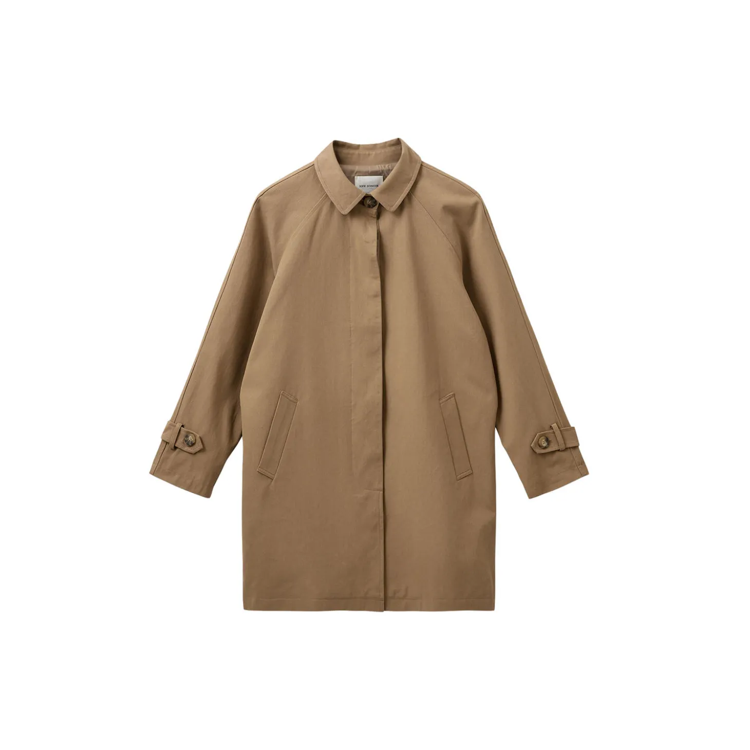 FilippaSW camel farvet trenchcoat. Denne trenchcoat har et oversized / relaxed fit og er lavet af 100% bomuld, hvilket sikrer både komfort og holdbarhed. Designet med knaplukning og en fin krave, tilføjer den et elegant touch til dit outfit. Perfekt til overgangsperioderne og til at fuldende din stil med et klassisk og tidløst look.