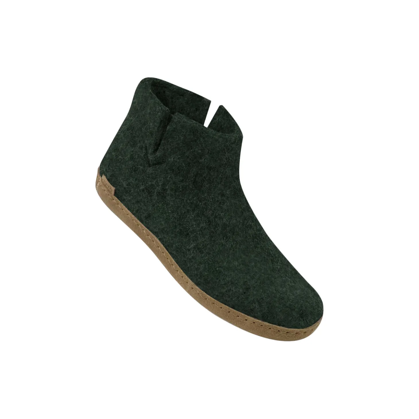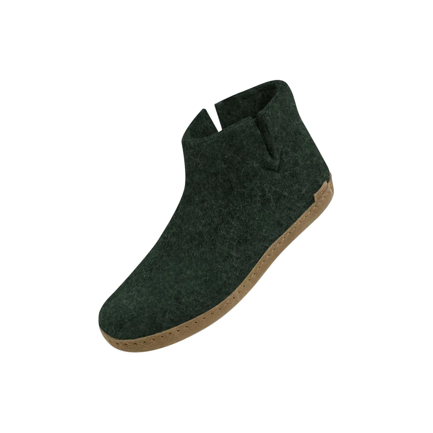 Filt ankelsko af 100% ren naturlig uld med en sål af blødt vegetabilsk garvet kalveskind. Formen på støvlen følger fodens konturer og sikrer, at støvlen bliver på plads. Skaftet slutter ved anklen. Støvlen er fleksibel og holder foden varm og tør, på grund af uldens egenskaber, da den har stor evne til at absorbere fugt.