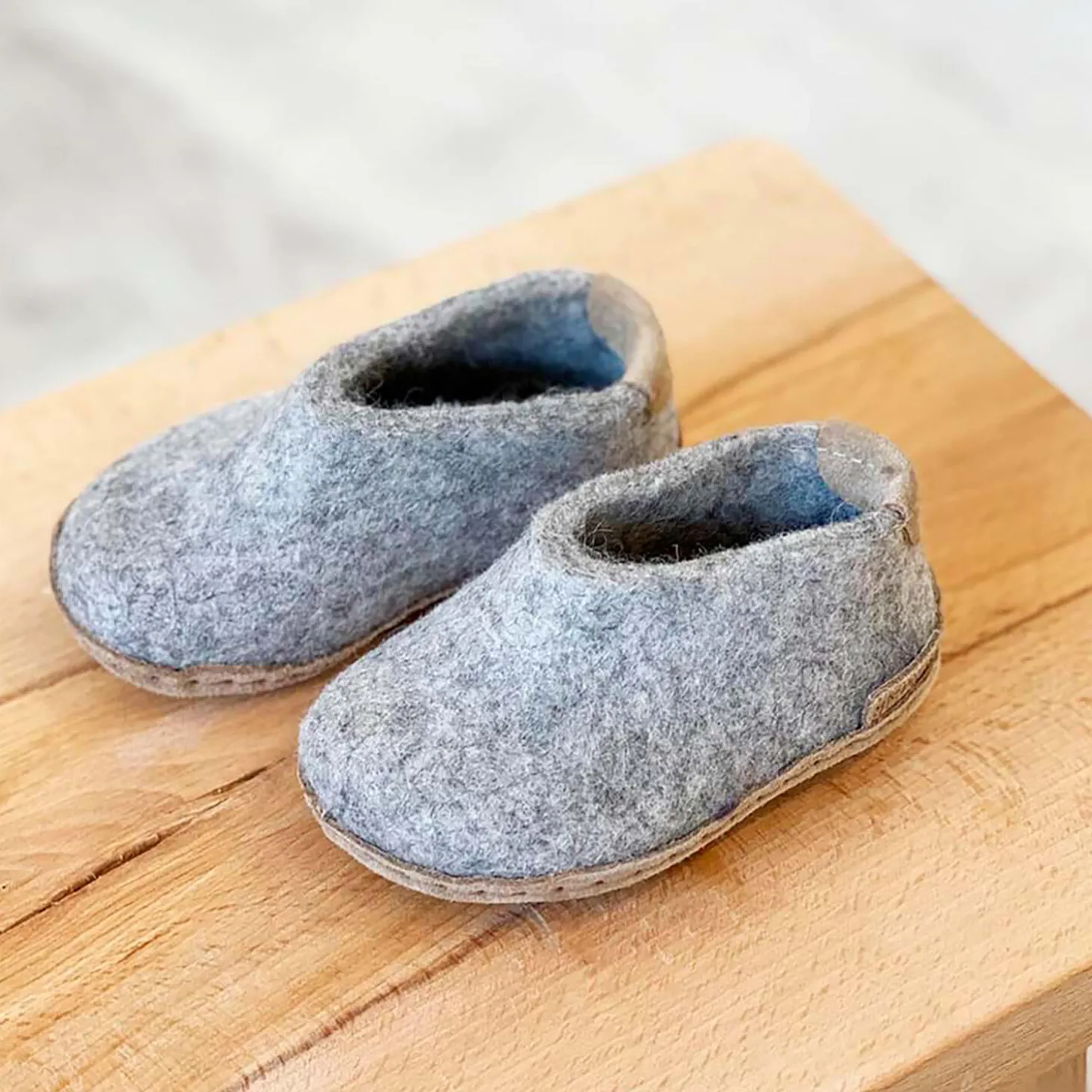Filt junior sko af 100% SilkFit med en sål af blødt kalveskind. Skoen er behagelig at have på og giver plads til små fødder at vokse. Formen følger fodens konturer og sikrer, at skoen bliver på plads. Skoen er fleksibel og holder foden varm og tør, da ulden har en stor evne til at absorbere fugt.
