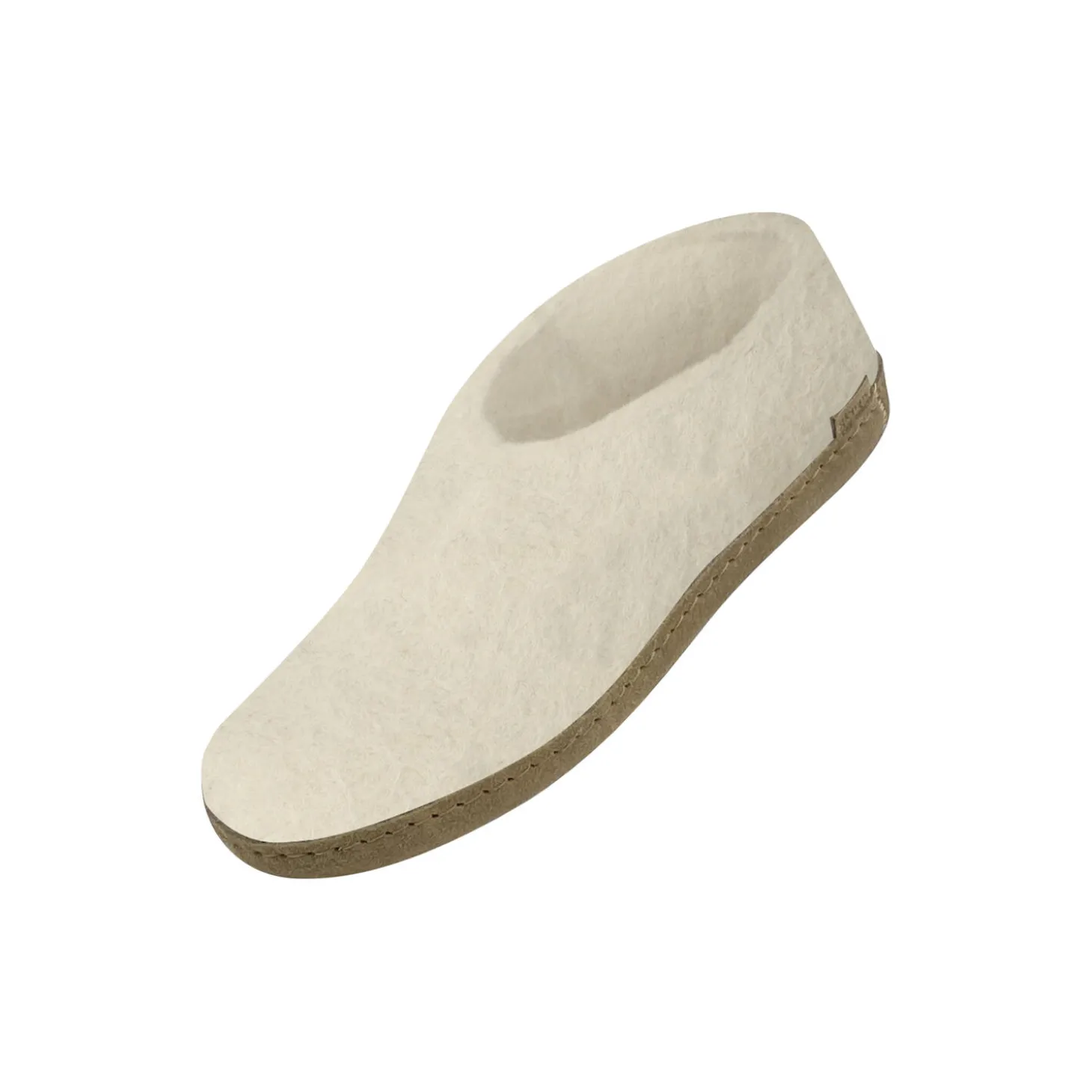 Filtsko af 100% ren naturlig uld med en sål af blødt kalveskind. Formen på skoen følger fodens konturer og sikrer, at skoen bliver på plads. Skoen er fleksibel og holder foden varm og tør på grund af uldens egenskaber, da den har stor evne til at absorbere fugt.