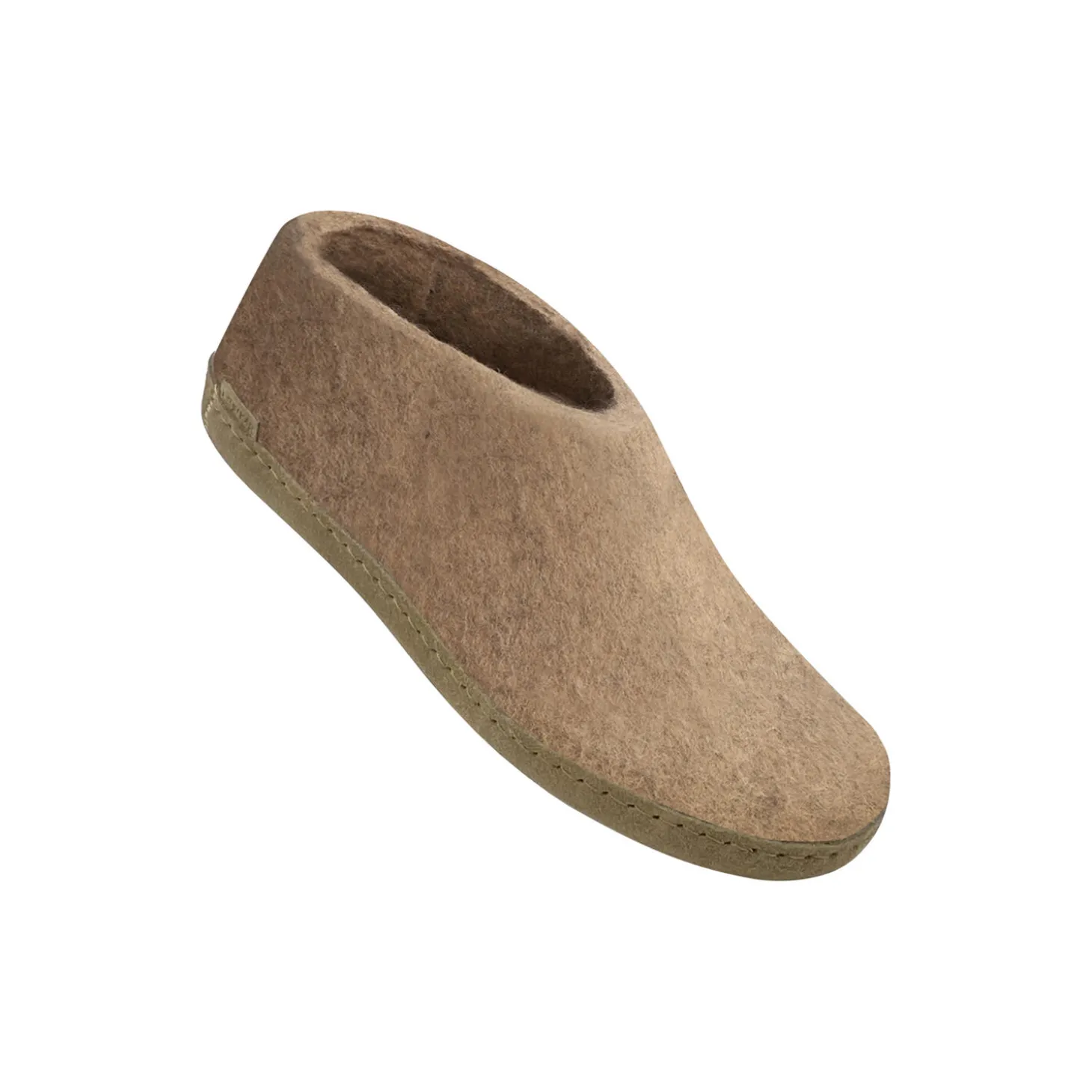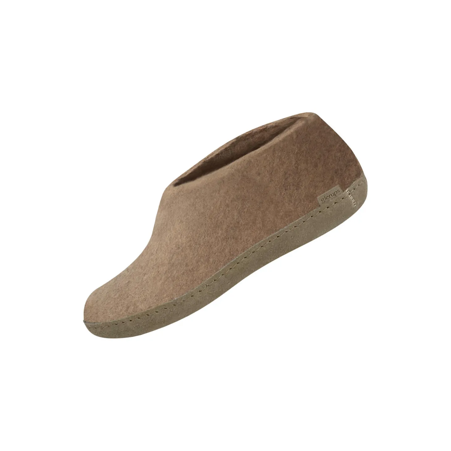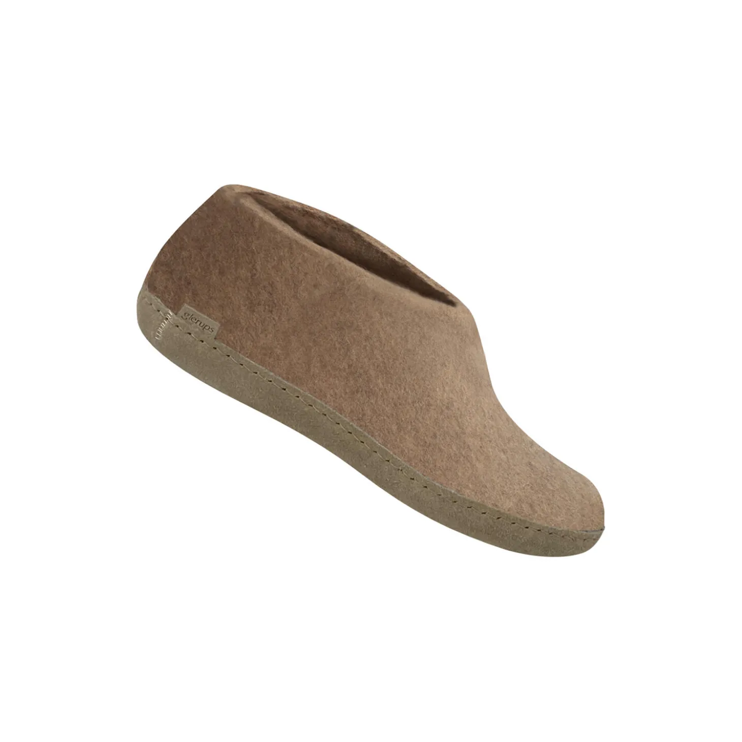 Filtsko af 100% ren naturlig uld med en sål af blødt kalveskind. Formen på skoen følger fodens konturer og sikrer, at skoen bliver på plads. Skoen er fleksibel og holder foden varm og tør på grund af uldens egenskaber, da den har stor evne til at absorbere fugt.