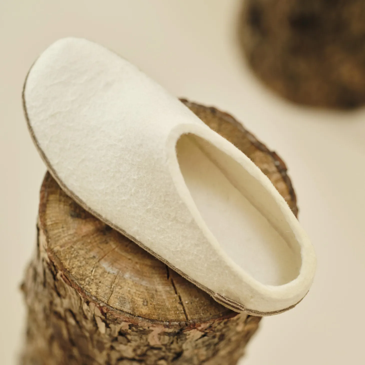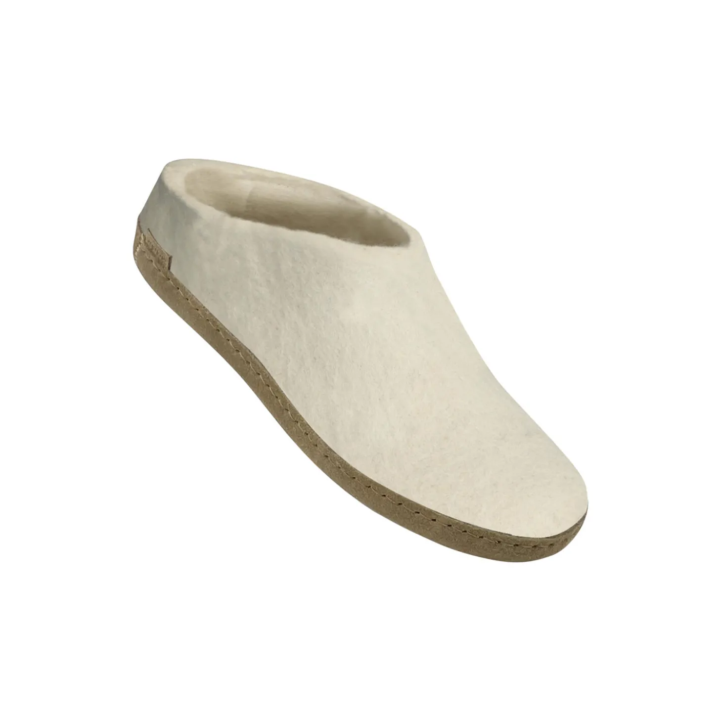 Filthjemmesko af 100% ren naturlig uld med en sål af blødt kalveskind. Hjemmeskoen er fleksibel og let at træde ned i. Den holder foden varm og tør på grund af uldens store evne til at absorbere fugt.