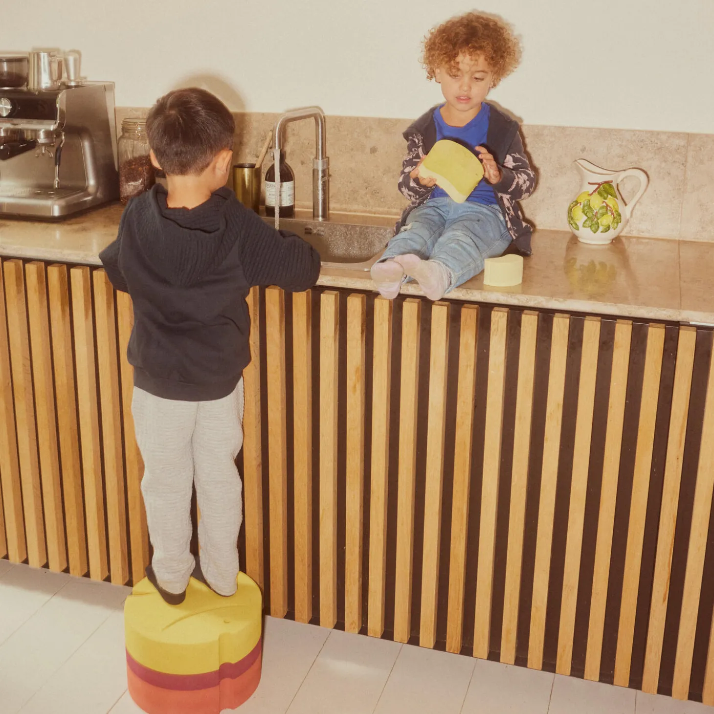 bObles Fisk er god at trille på liggende på mave eller ryg, sidde overskrævs på og rulle fra side til side. Fiskens design og størrelse gør det muligt for børn i alle aldre at flytte den fra rum til rum, hvor den kan bruges som skammel f.eks. ved håndvask, tandbørstning og madlavning.