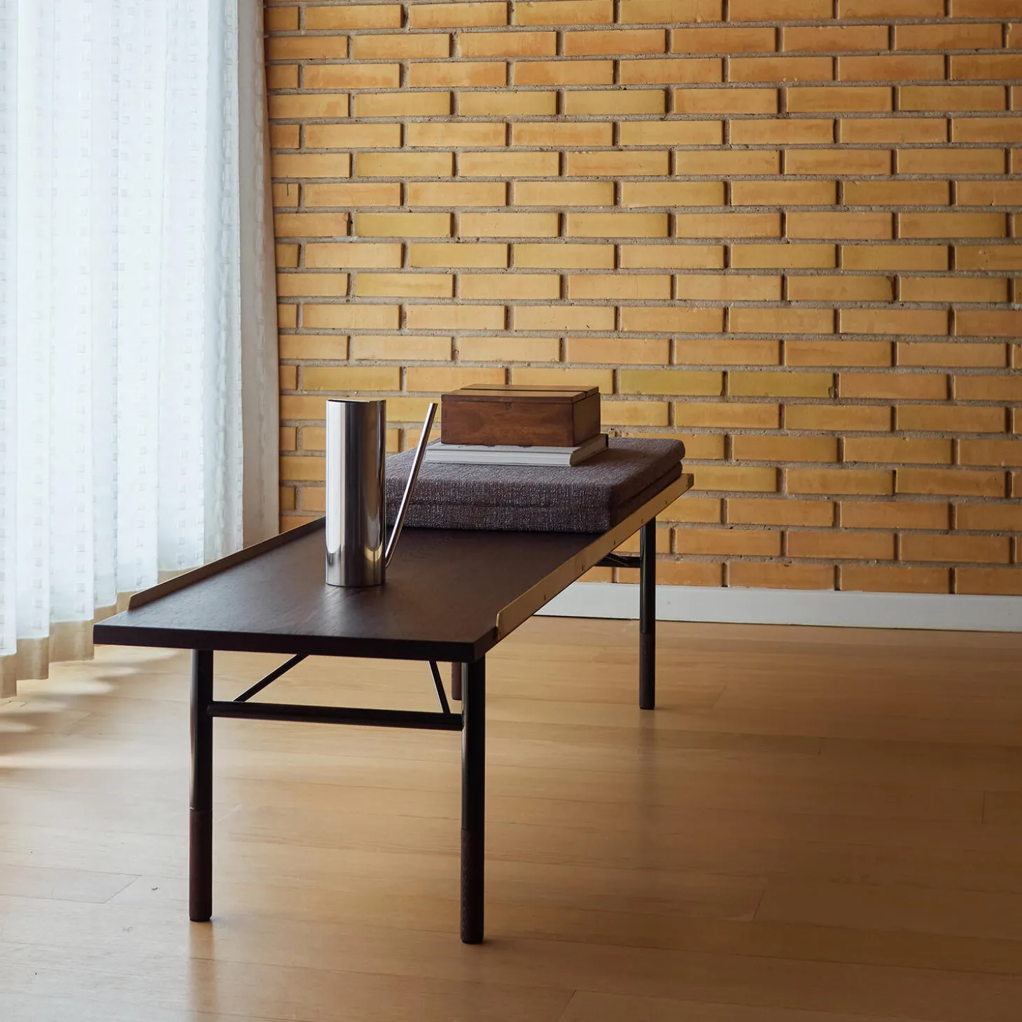 FJ5517 Bordbænken i wengé og messing fra House of Finn Juhl™. Farve: wengé/messing. Mål: H: 39 x L: 170 x B: 45 cm. Design: Finn Juhl.