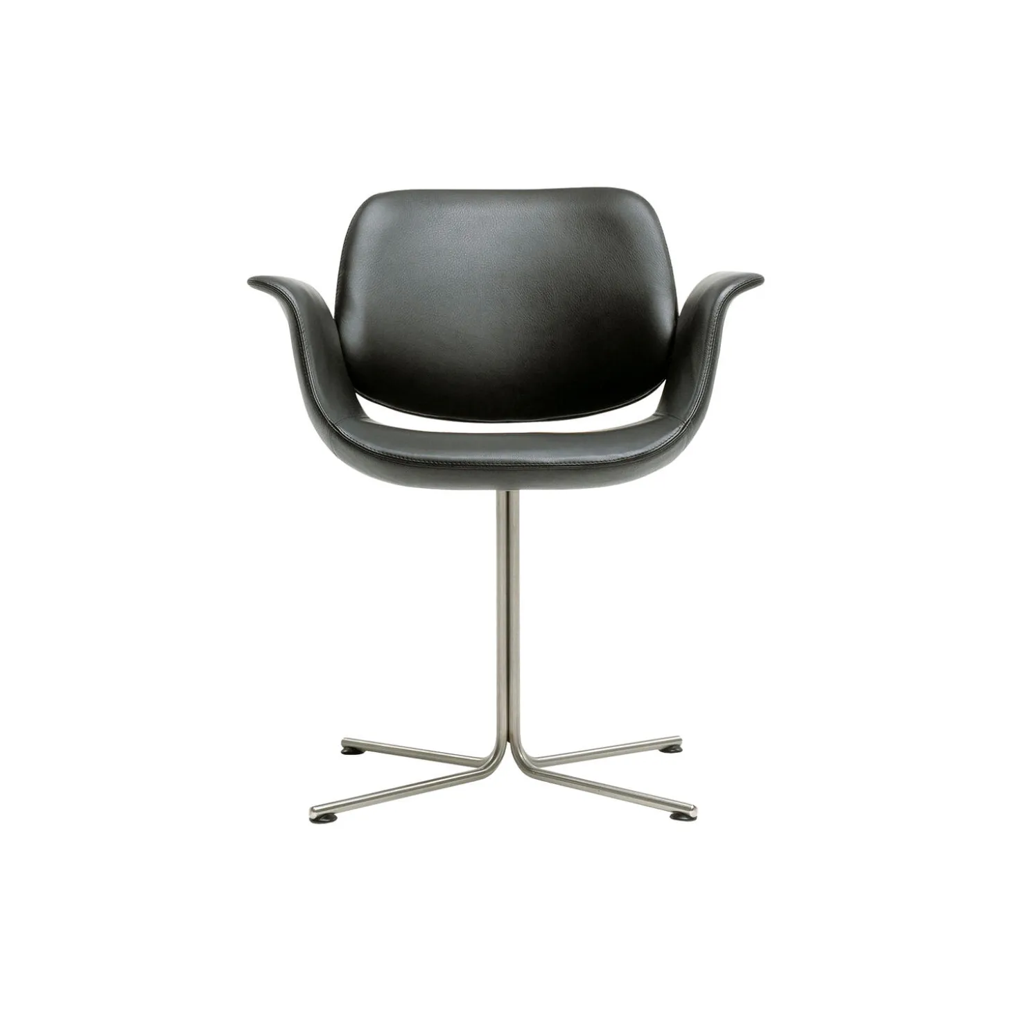 Flamingo Chair med fast stel med polstring i Max 98 semianilinlæder og stel i børstet rustfrit stål fra Fredericia. Farve: Black 98. Mål: H: 80 x B: 68 x D: 63 cm. Siddehøjde: 45 cm. Design: Foersom & Hiort-Lorenzen.