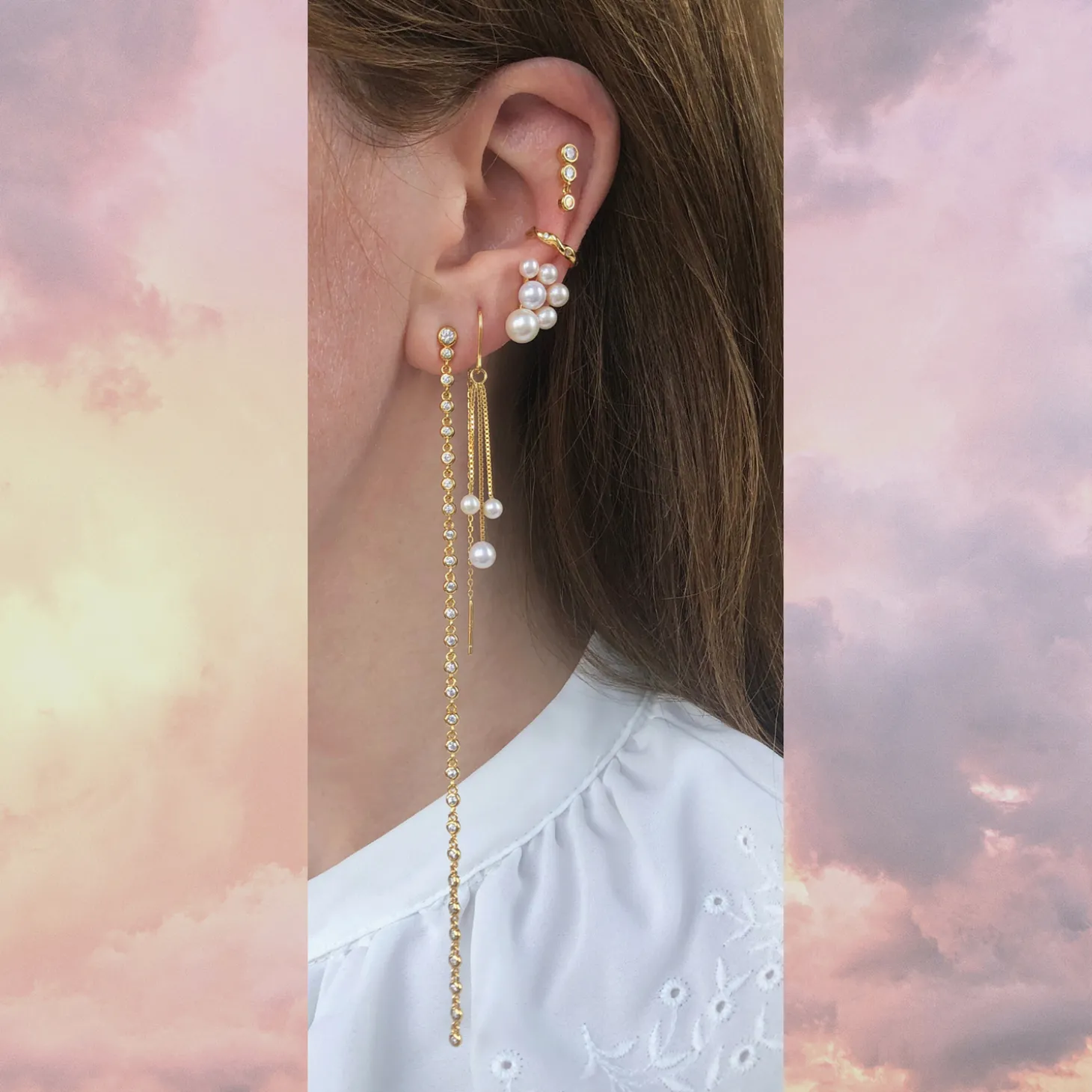 - Materiale: 18k forgyldt 925 sølv, hvide ferskvands perler