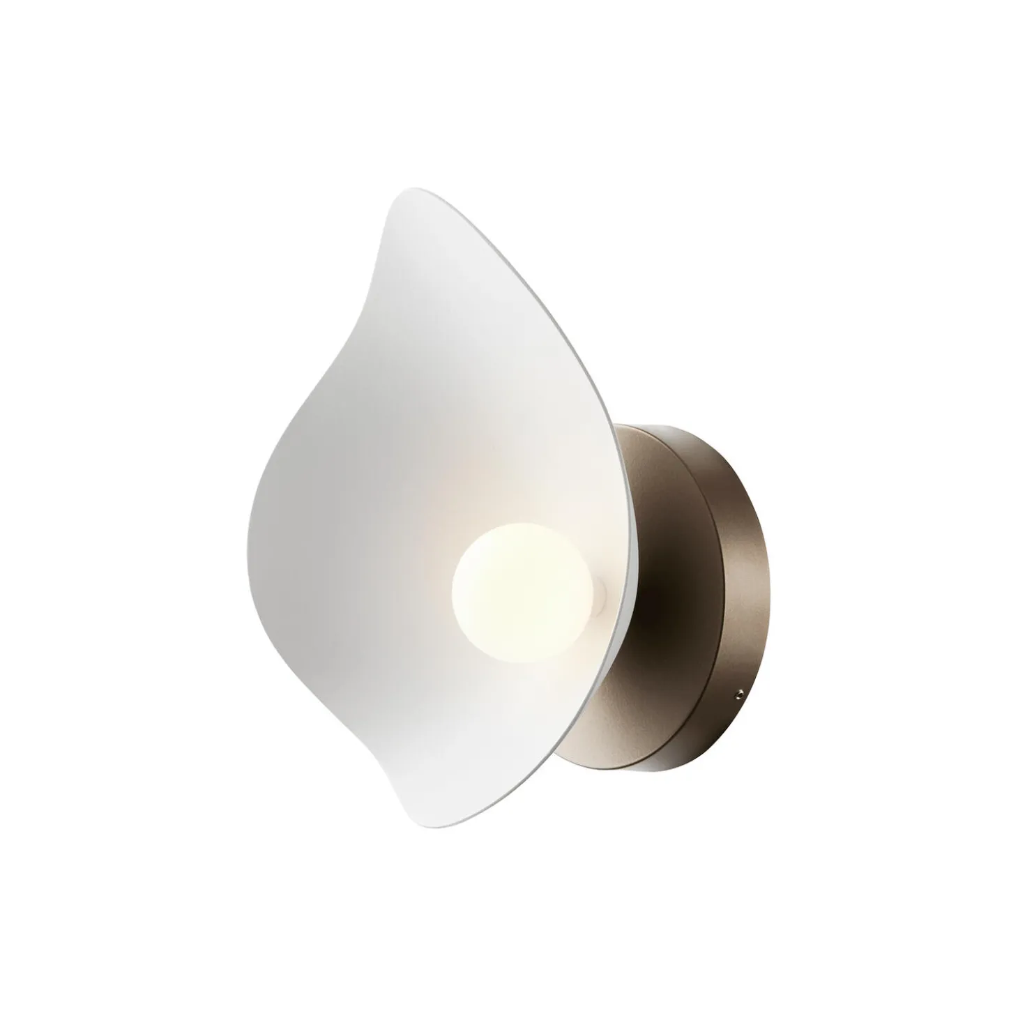 Florii 1 Wall er en væglampe, der giver en sofistikeret udtryk til enhver setting, hvor der ønskes et varm og indbydende lys. Fra en bagplade, i dark bronze, udfoldes en elegant, hvid metalskærm, der danner et betagende sammenspil mellem lys og skygge. Florii 1 Wall har en integreret LED-teknologi, der giver et effektivt og langtidsholdbart lys, som nemt kan udskiftes uden værktøj, og som er ideel i gangarealer, køkkenet og rum, hvor der ønskes en dekorativ belysningskilde.