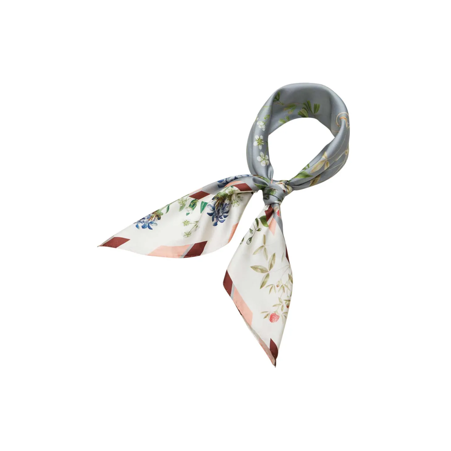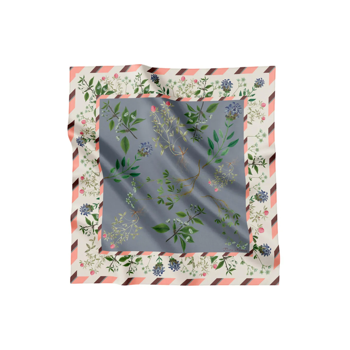 Flowering Garden er et smukt, ekslusivt og elegant silketørklæde. Motivet er trykt på 100% luksuriøst silketwill, der giver en følelse af kvalitet. Den grå baggrundsfarve giver et tidsløst udtryk og en smuk kontrast til de mange blomsterillustrationer, der danner motivet for silketørklædet. Den stribede kant rammer flot hele tørklædet ind og giver dit outfit en elegant detalje. Silketørklædets unikke motiv er designet ud fra udvalgte Flora Danica blomsterillustrationer. Bind det rundt om halsen eller brug det som et sjal over skulderen. Tørklædet er blødt og behageligt at have på, og silketwill vævningen samt de håndrullede kanter giver et luksuriøst udtryk.