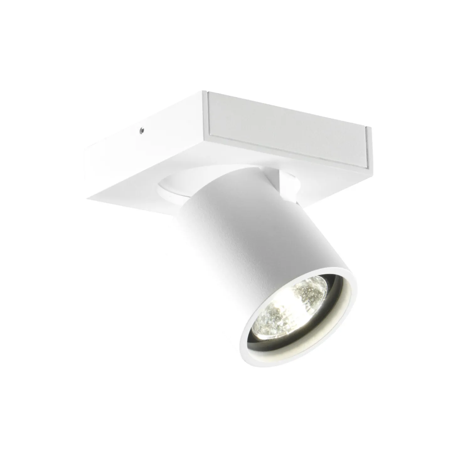 FOCUS+ 1 loftspot i aluminium og glas fra LIGHT-POINT. Farve: hvid. Mål: Base: H: 2,5 x L: 12 x B: 12 cm. Spot: Ø 8,5 cm. Lyskilde: 10W LED. IP20. 2700K. 360° drejbar spot. Kan tilsluttes lysdæmper og anbefales kun til indendørs brug. Design: Ronni Gol.