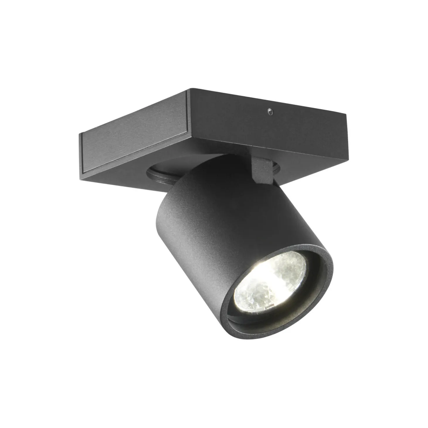 FOCUS 1 loftspot i aluminium og glas fra LIGHT-POINT. Farve: sort. Mål: Base: H: 2,5 x L: 10 x B: 10 cm. Spot: Ø 6,5 cm. Lyskilde: 6W LED. IP20. 2700K. 360° drejbar spot. Kan tilsluttes lysdæmper og anbefales kun til indendørs brug. Design: Ronni Gol.