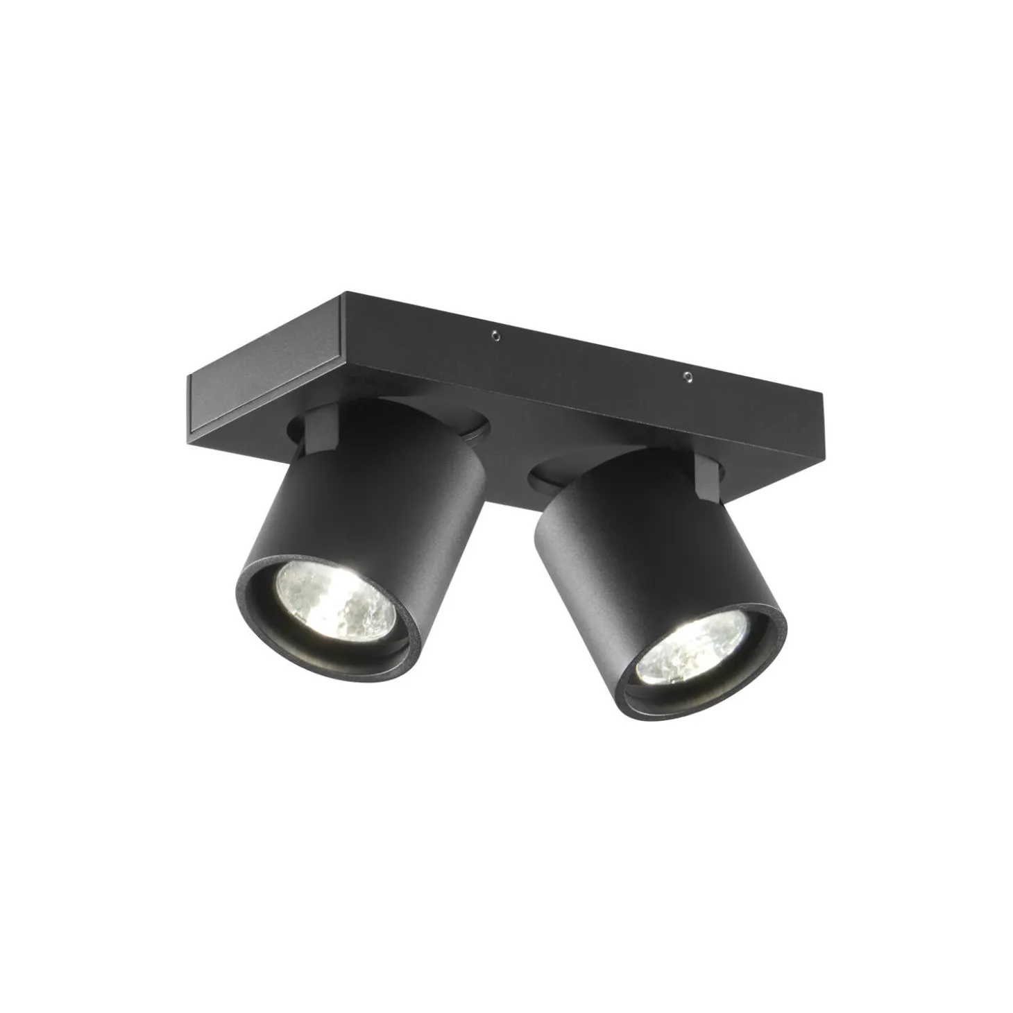 FOCUS Mini 2 loftspot i aluminium og glas fra LIGHT-POINT. Farve: sort. Mål: Base: H: 2,5 x L: 8 x B: 16 cm. Spot: Ø 5,5 cm. Lyskilde: 2 x 4W LED. IP20. 2700K. 360° drejbar spot. Kan tilsluttes lysdæmper og anbefales kun til indendørs brug. Design: Ronni Gol.