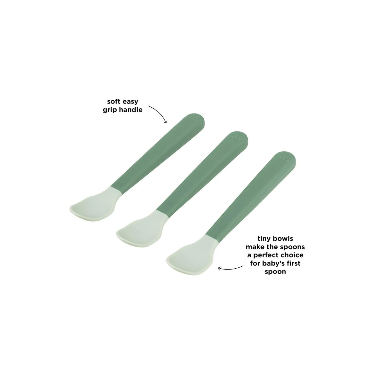 • Baby- og madeske 3-pak i seje, grønne nuancer• Det lille skeblad har den perfekte størrelse til en babys første ske• Skaftet har en blød easy-grip-belægning, der sikrer et godt greb• Skeerne tåler opvaskemaskine• Fri for BPA, ftalater og andre skadelige stoffer• Efter utallige måltider kan skeerne affaldssorteres som plast og genanvendes