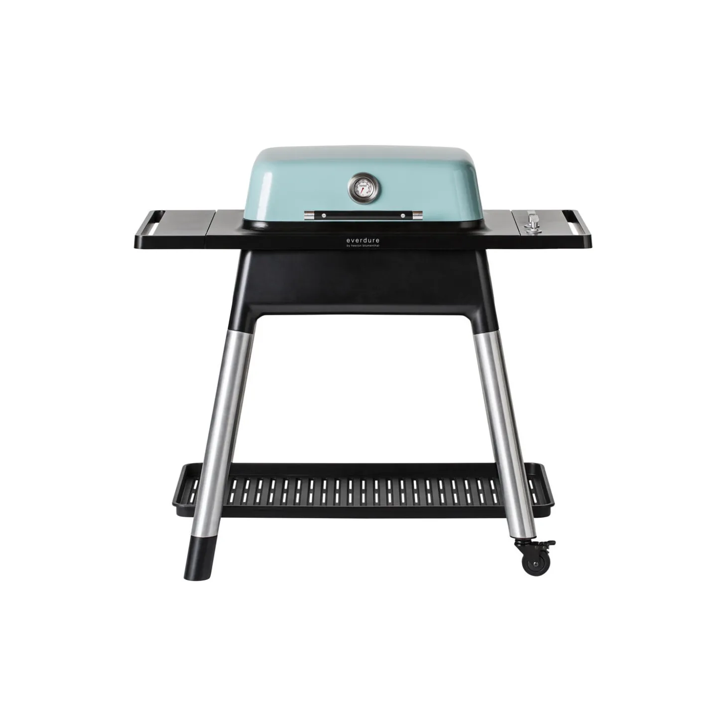 FORCE™ gasgrill i rustfrit pressestøbt aluminium med emaljelakeret låg fra EVERDURE by Heston Blumenthal. Farve: mint. Mål: H: 106,7-144,7 x B: 131,2 x D: 74,3 cm. Grillen er udstyret med to separate brændere og variabel flammeregulering. Effekt: op til 7,8 kW. Design: EVERDURE by Heston Blumenthal.