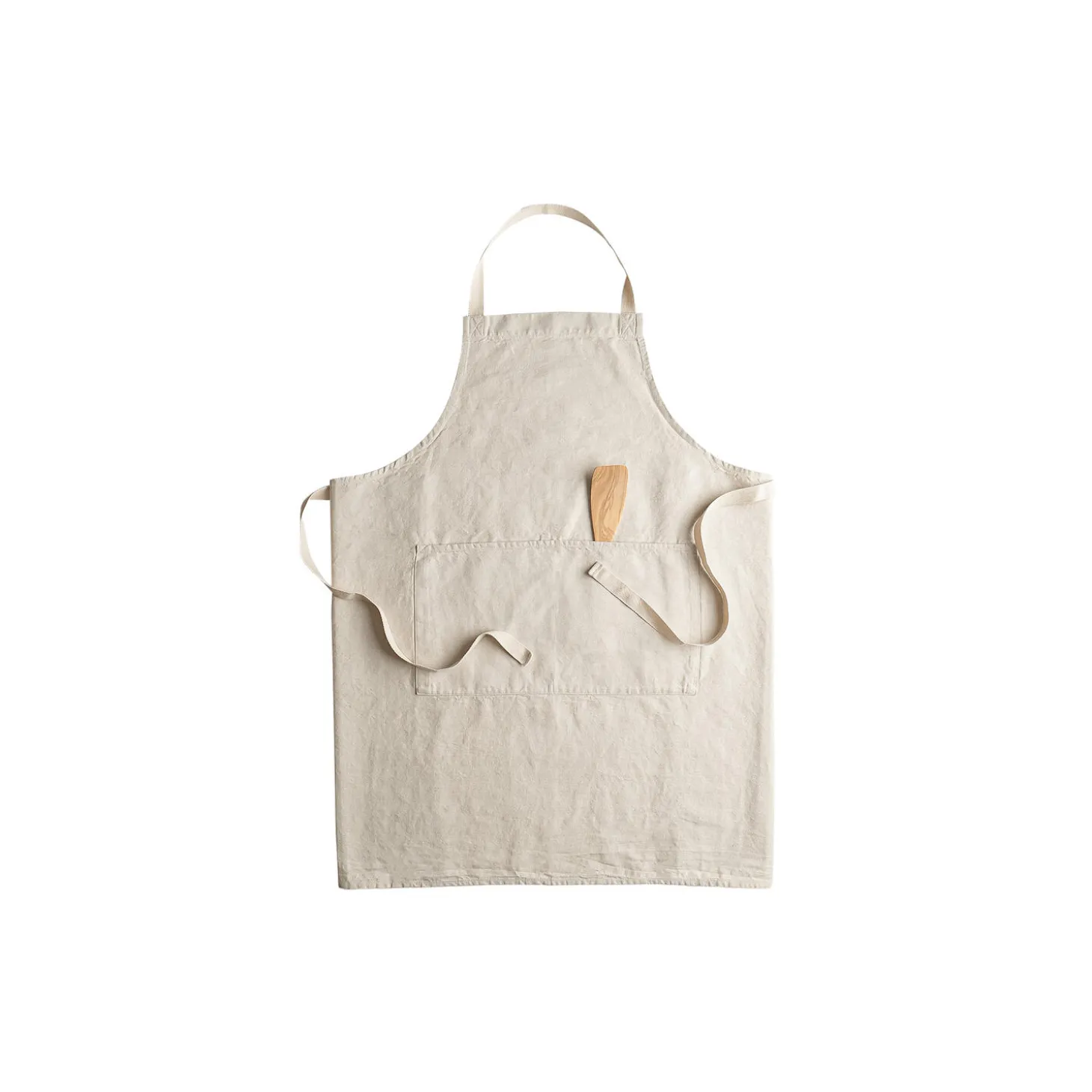 Vær godt klædt på i køkkenet med et blødt og komfortabelt forklæde, skabt med fransk håndværk i en slidstærk, industriel kvalitet. Forklædet kommer i en størrelse, som passer de fleste, da forklædet kan snøres ind med de lange stropper – og med en rummelig dobbeltlomme, har du altid dine køkkenredskaber lige ved hånden. Forklædet er vævet i et kvalitetsblend af stenvasket hør og bomuld, hvilket gør det både holdbart og behageligt. Med over 150 års håndværkstradition bag sig bliver stoffet vævet og syet til forklæder i eksklusiv fransk kvalitet, der tåler maskinopvask og tørretumbler.