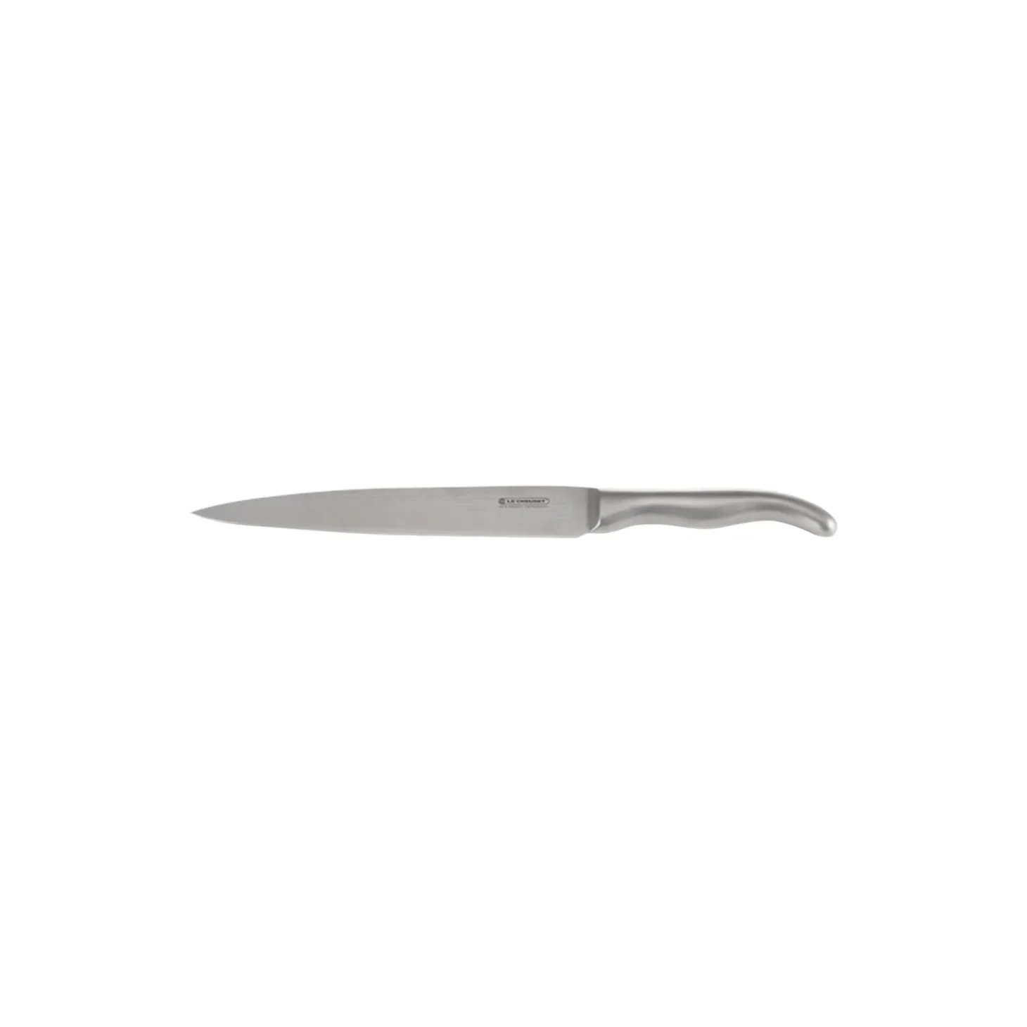 Skær kød, fjerkræ og fisk på få minutter med denne forskærerkniv fra Le Creuset. Den har et stærkt, skarpt, tilspidset blad, som er fint fremstillet i førsteklasses damaskstål. Den er afsluttet med et håndtag af rustfrit stål for et behageligt greb og strålende udtryk.