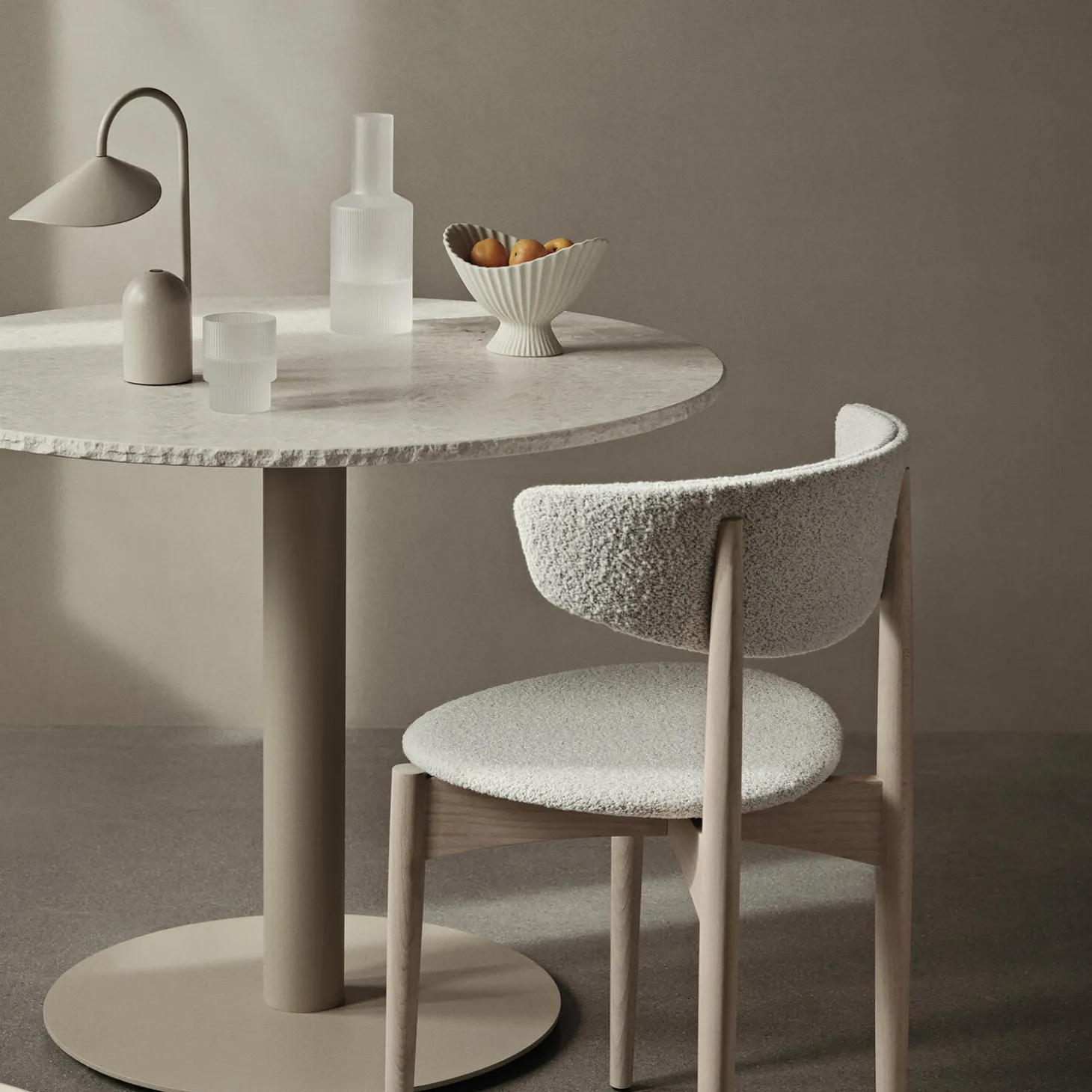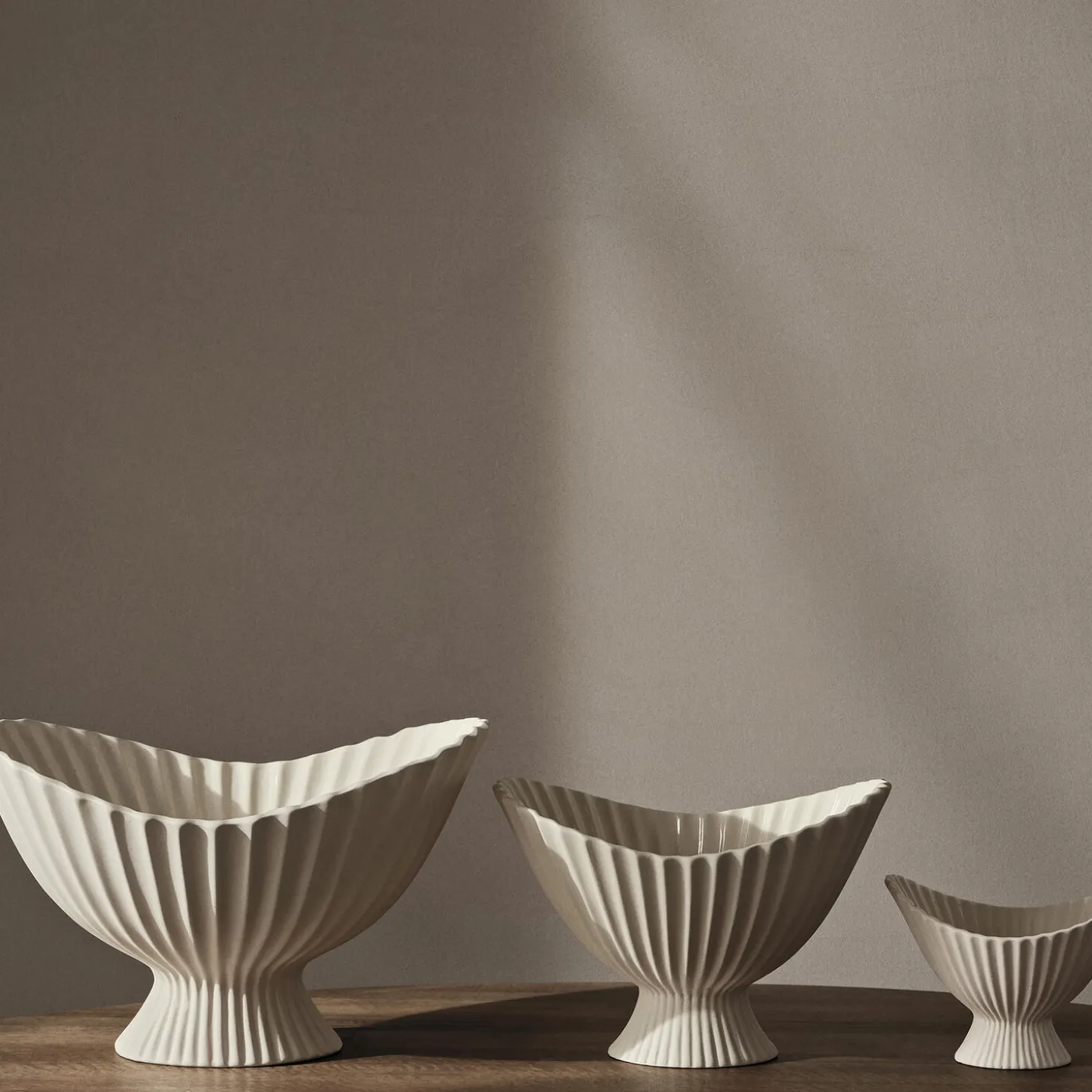 Den skulpturelle Fountain-skål i keramik løftes af en lille fod og har et blødt, plisseret udtryk, der øjeblikkeligt tiltrækker sig opmærksomhed. Skålens design er inspireret af formen på klassiske springvand, og den kan bruges til nips, servering af slik eller stå alene som en dekorativ og smuk genstand. Fountain Bowl har en mat yderside, mens indersiden har en klar glasur, hvilket gør den velegnet til opbevaring af meget forskelligt.