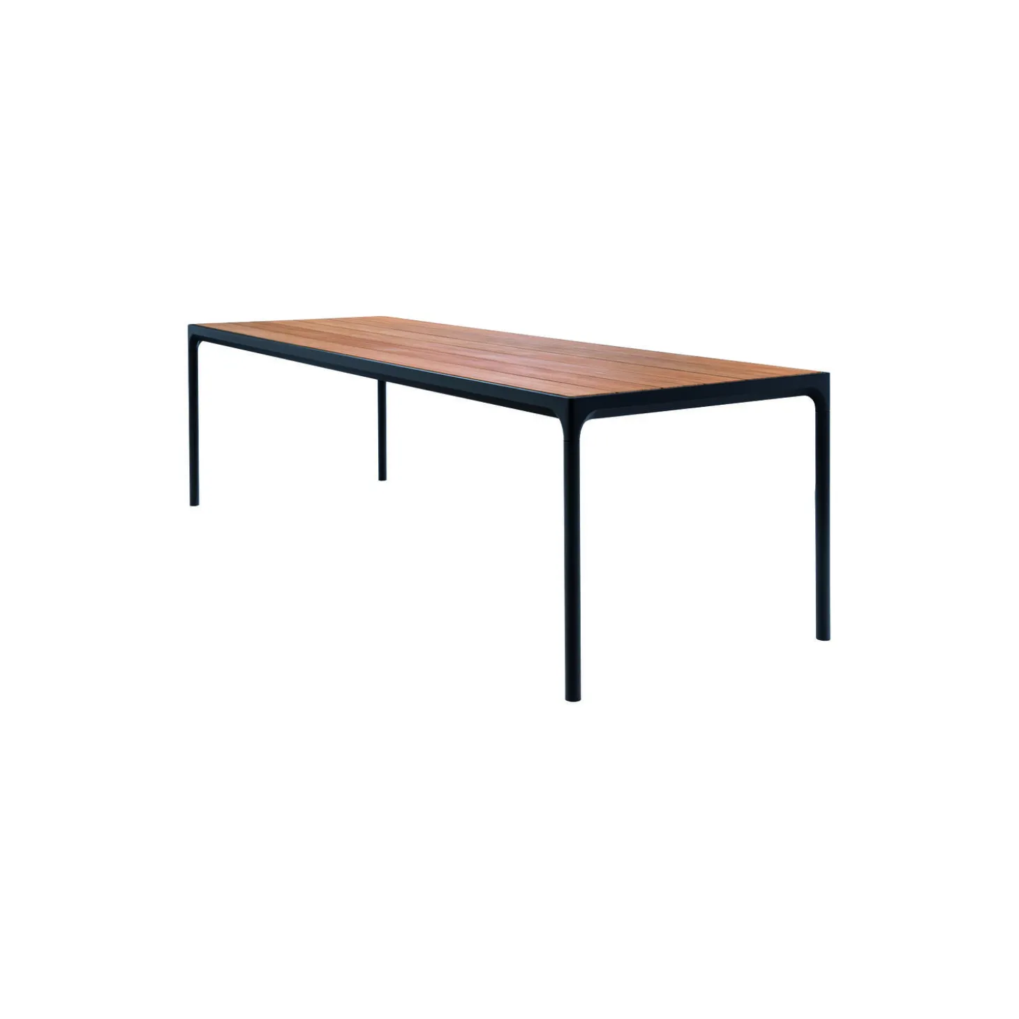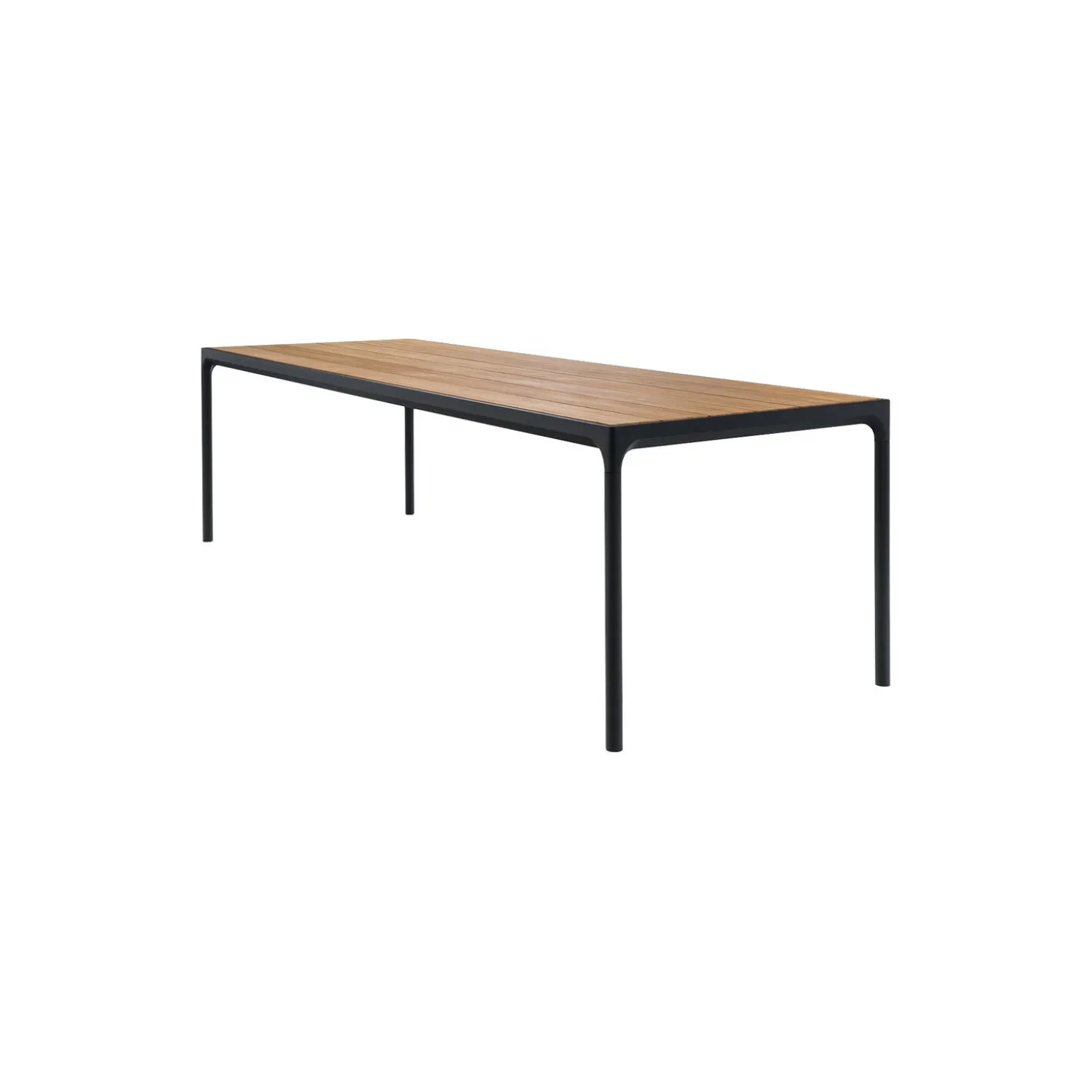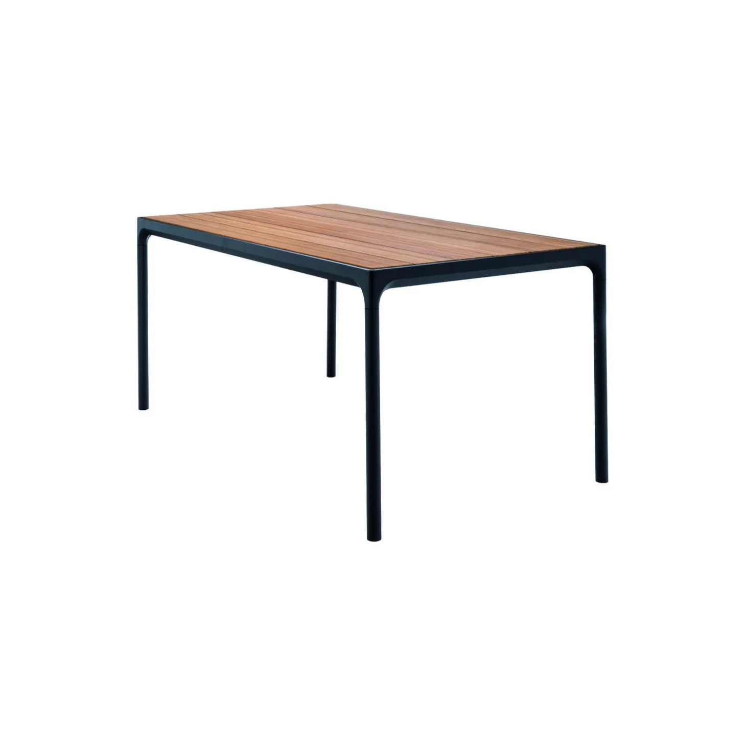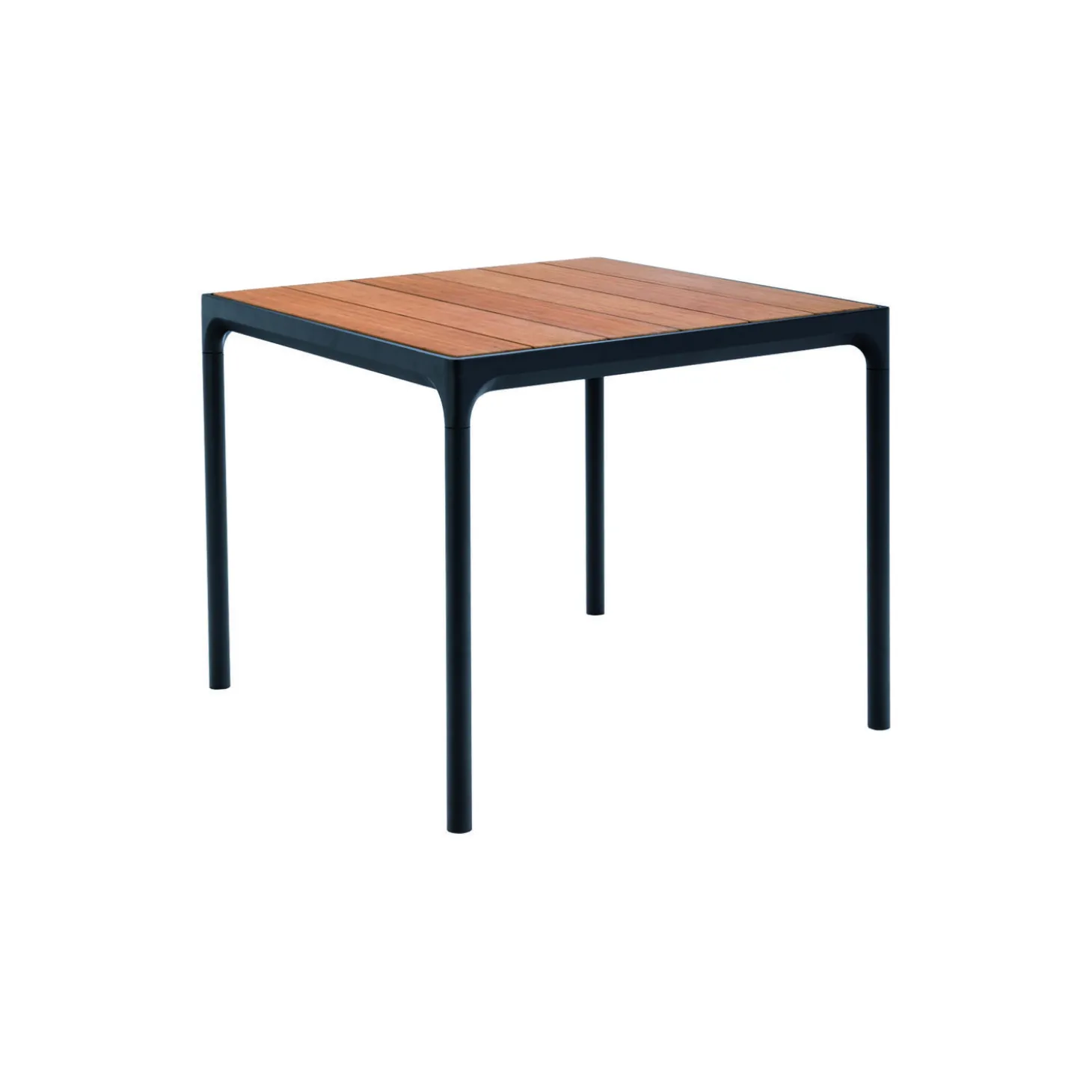 FOUR bord i pulverlakeret aluminiumsstel med bordplade af bambuslameller fra HOUE. Farve: bambus/sort. Mål: H: 74 x L: 90 x B: 90 cm. Design: Henrik Pedersen.