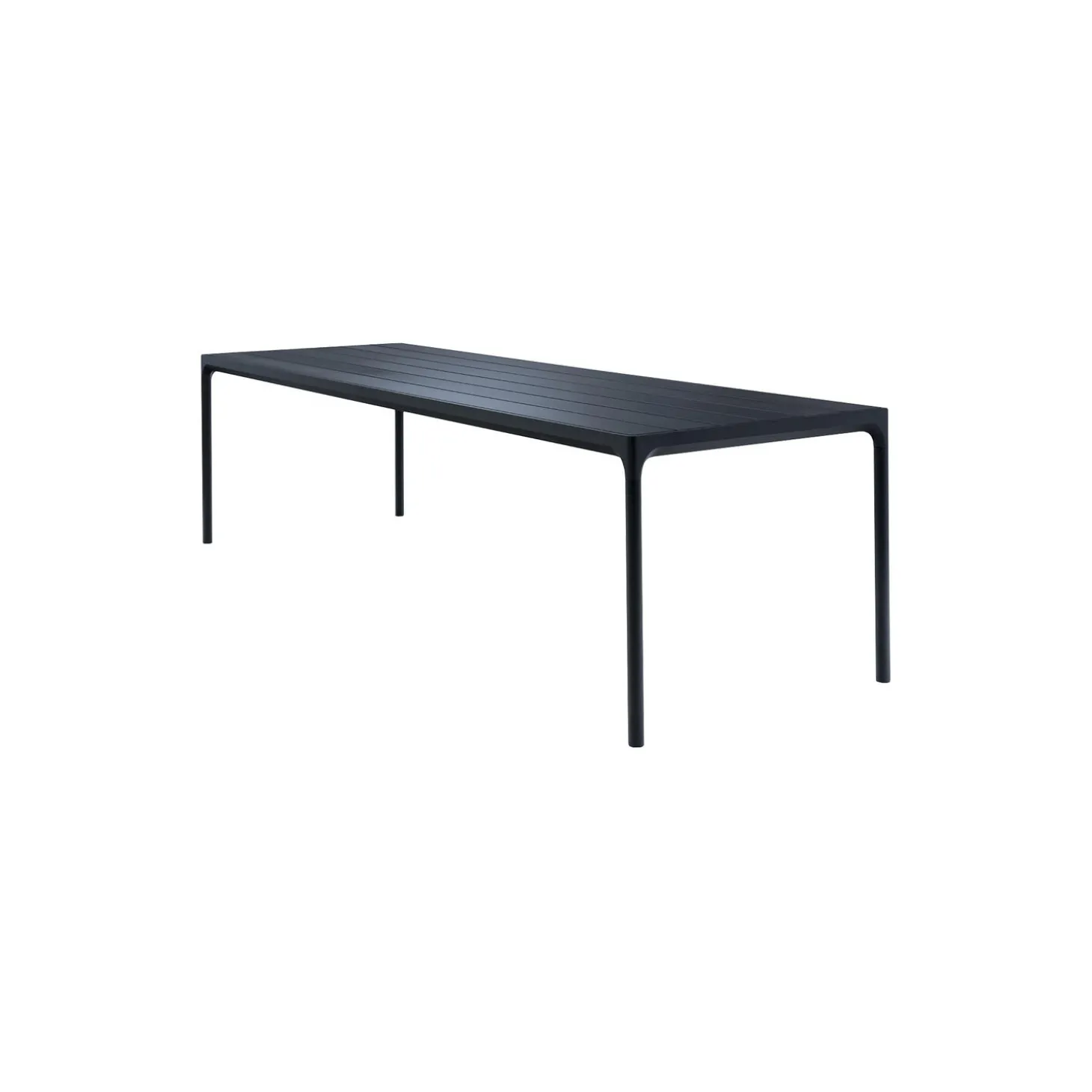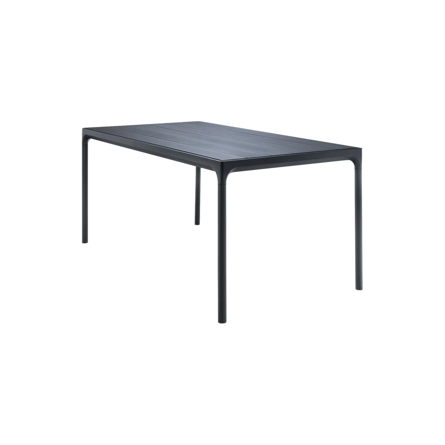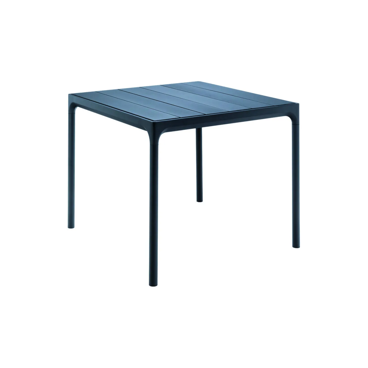 FOUR bord i pulverlakeret aluminiumsstel med bordplade af aluminiumlameller fra HOUE. Farve: sort. Mål: H: 74 x L: 90 x B: 90 cm. Design: Henrik Pedersen.
