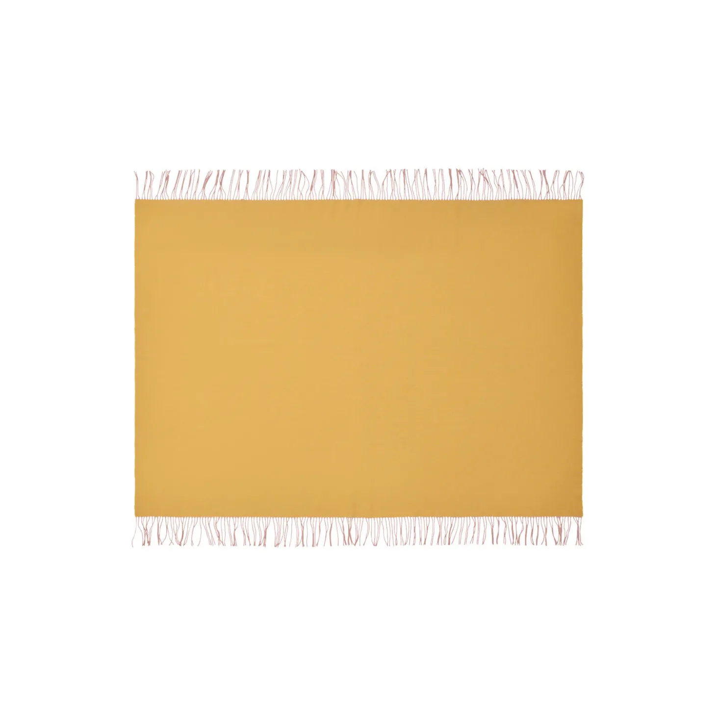 Franja er vævet i 50% alpaka og 50% uld. ‘Franjas’ smukke farver, ‘Butter Peach’ og ‘Burgundy Blue’, tilføjer plaiderne et smukt udtryk til hjemmets mange hyggelige kroge.