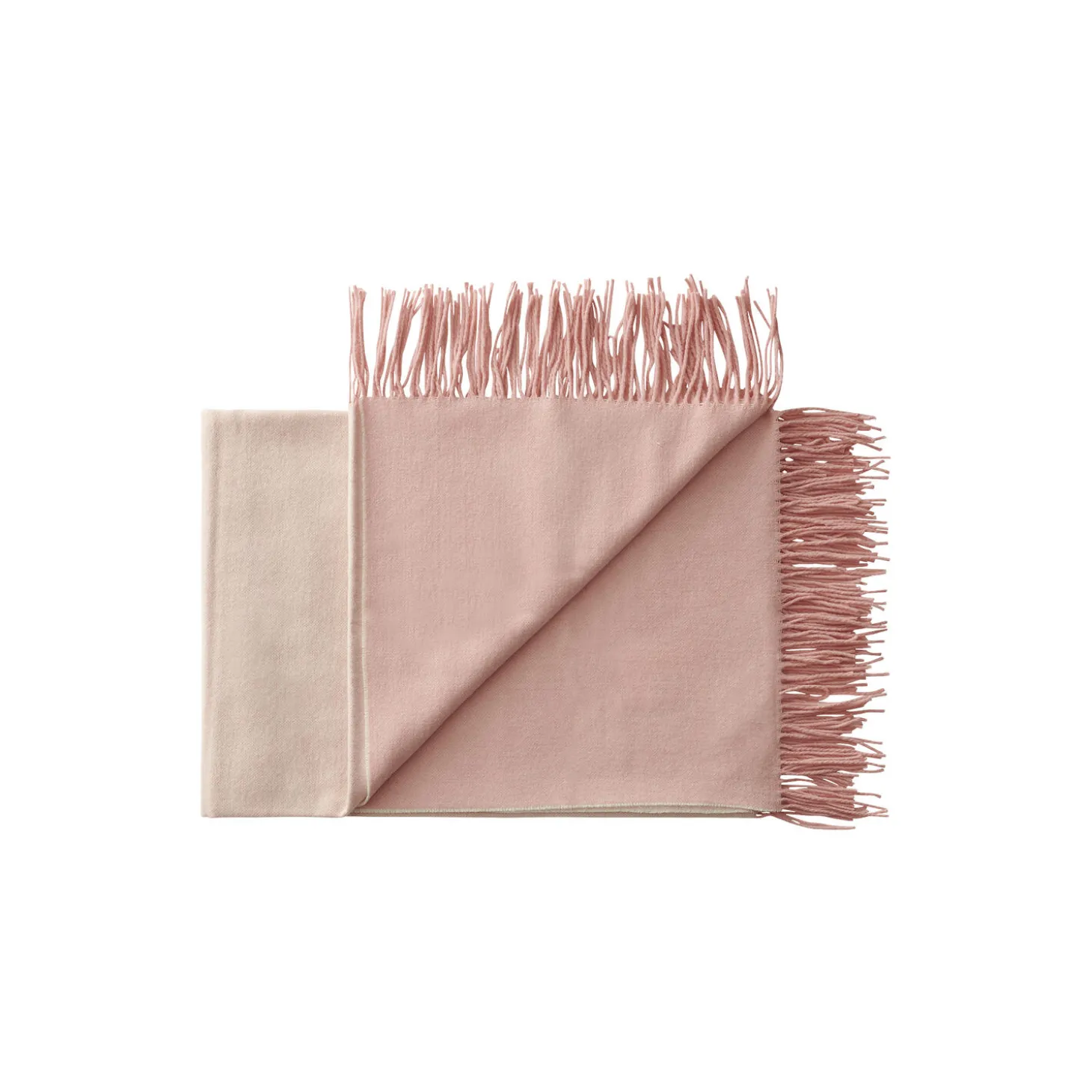 Franja er vævet i 50% alpaka og 50% uld. ‘Franjas’ smukke farver, ‘Butter Peach’ og ‘Burgundy Blue’, tilføjer plaiderne et smukt udtryk til hjemmets mange hyggelige kroge.