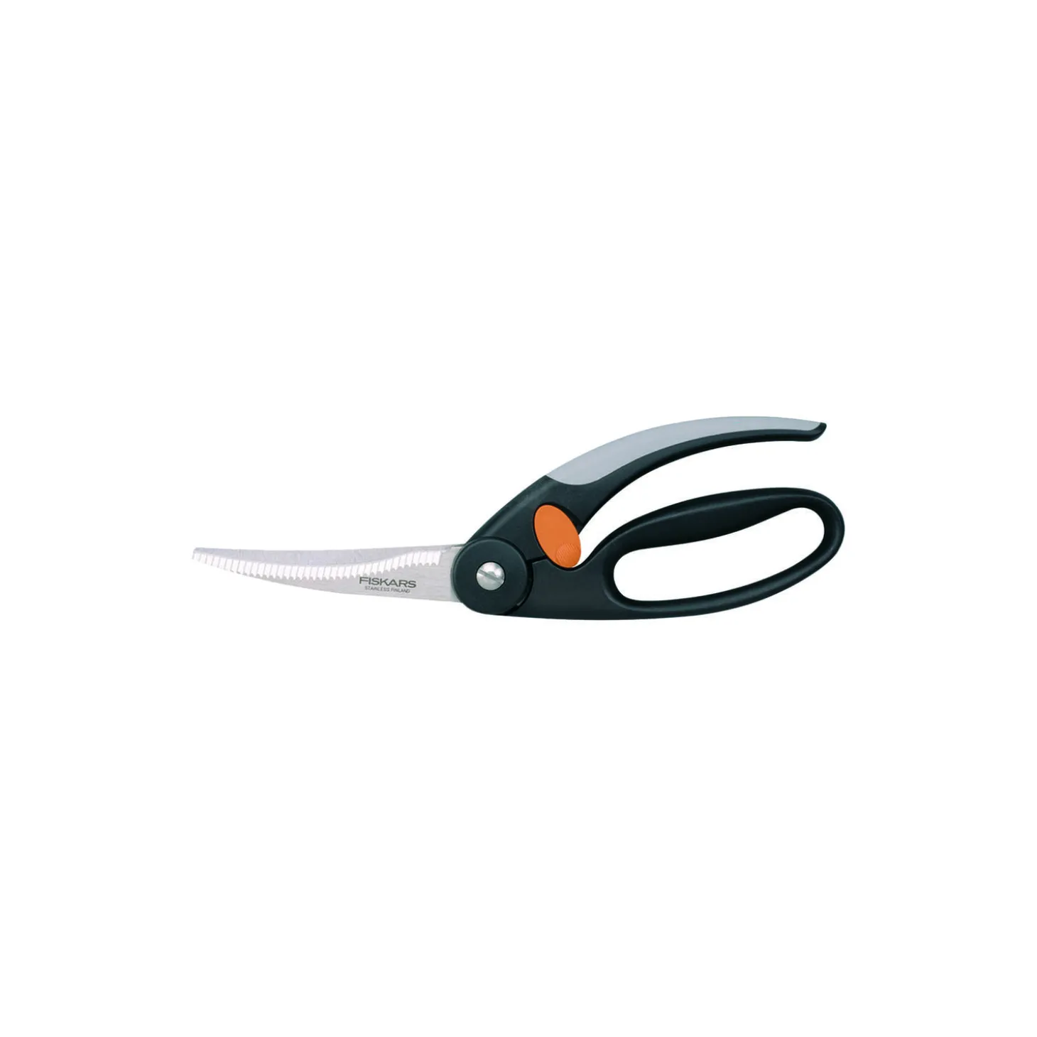 Stærke skær til flåning af, klipning i og partering af fjerkræ og vildt. De krumme, profilerede blade gør klippearbejdet lettere. Blad med udsparing til klipning i ben. Soft-grip-håndtagene er velegnede til både venstre- og højrehåndede brugere. Fingerbøjlehåndtag, som er praktisk at bruge. Tommelfingerbetjent låsemekanisme. Justerbar bladspænding.