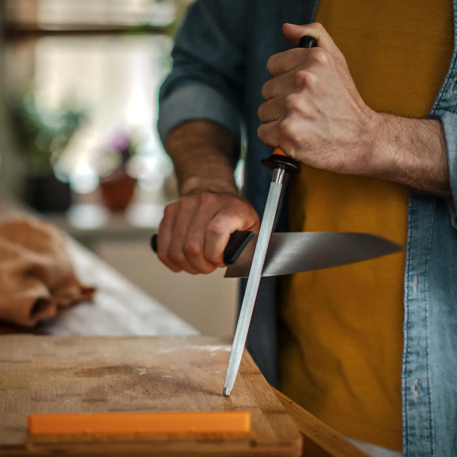 Fiskars Functional Form Strygestål er uundværligt, når dine knive skal være knivskarpe til hverdagens skæreopgaver. Perfekt til hverdagskokke, der sætter pris på rengøringsvenlige køkkenredskaber med et smart design. Slib dine knive hurtigt og nemt ved at bruge et traditionelt strygestål. Fem til seks simple strøg holder dine knive knivskarpe, så de altid er så gode som nye. Når du bruger strygestålet, skal du holde det i en vinkel på 15-20° hele vejen gennem hvert strøg. Start strøget fra toppen af bladet ved håndtaget, og lad bladet glide hele vejen ned til strygestålets spids. Vask derefter kniven, og tør den med en klud. Strygestålet er lavet af slidstærkt stål til slibning af sløve knive, og dets ergonomiske håndtag får strygestålet til at ligge sikkert i din hånd. Ligesom alle andre knive og redskaber i Functional Form™-serien tåler dette strygestål opvaskemaskine for nem rengøring i hverdagen. Designet i Finland.