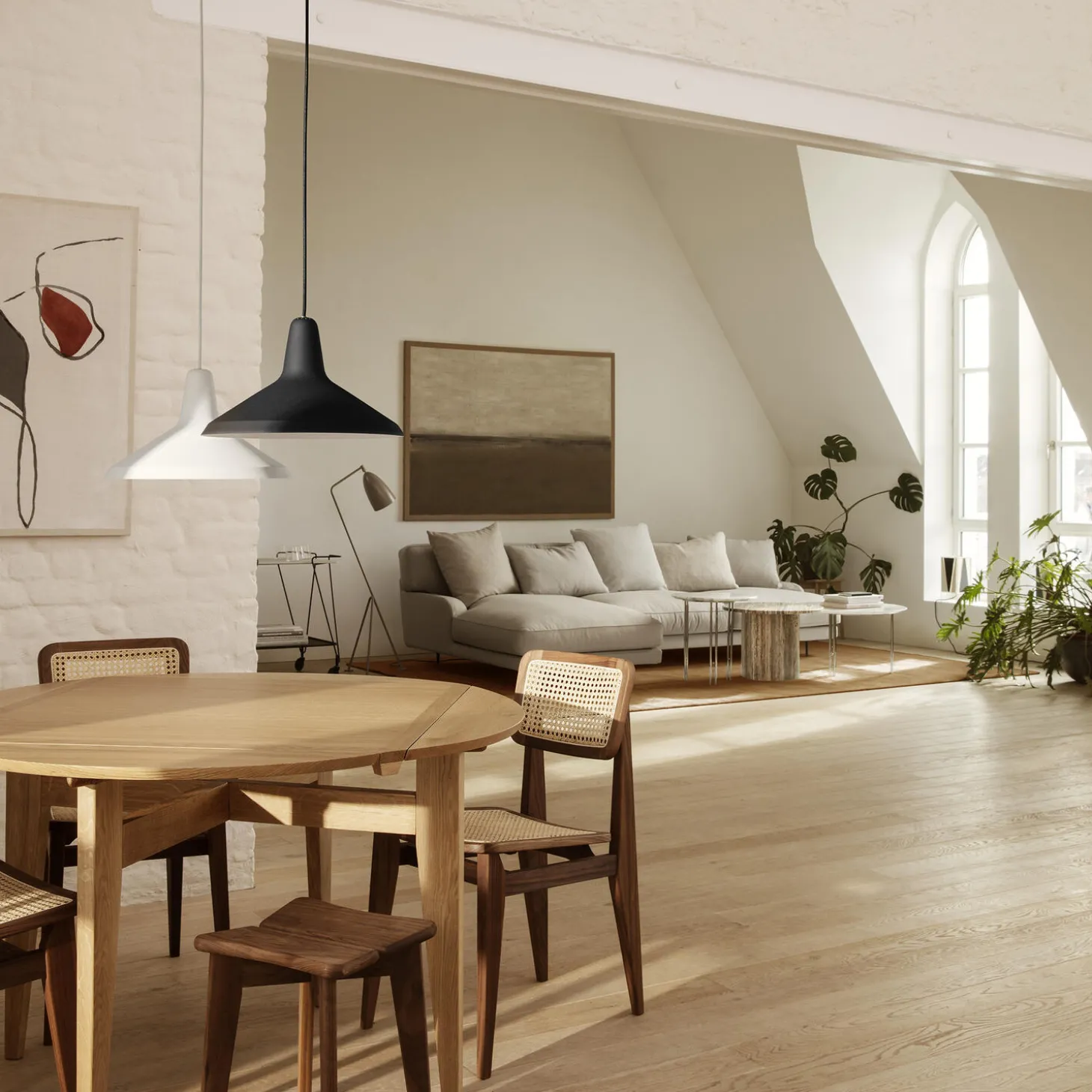 G-10 Pendant i metal og børstet messing fra GUBI. Farve: black rough. Mål: H: 30 x Ø 36,5 cm. Lyskilde: 6-10W LED E27. Design: Greta M. Grossman.