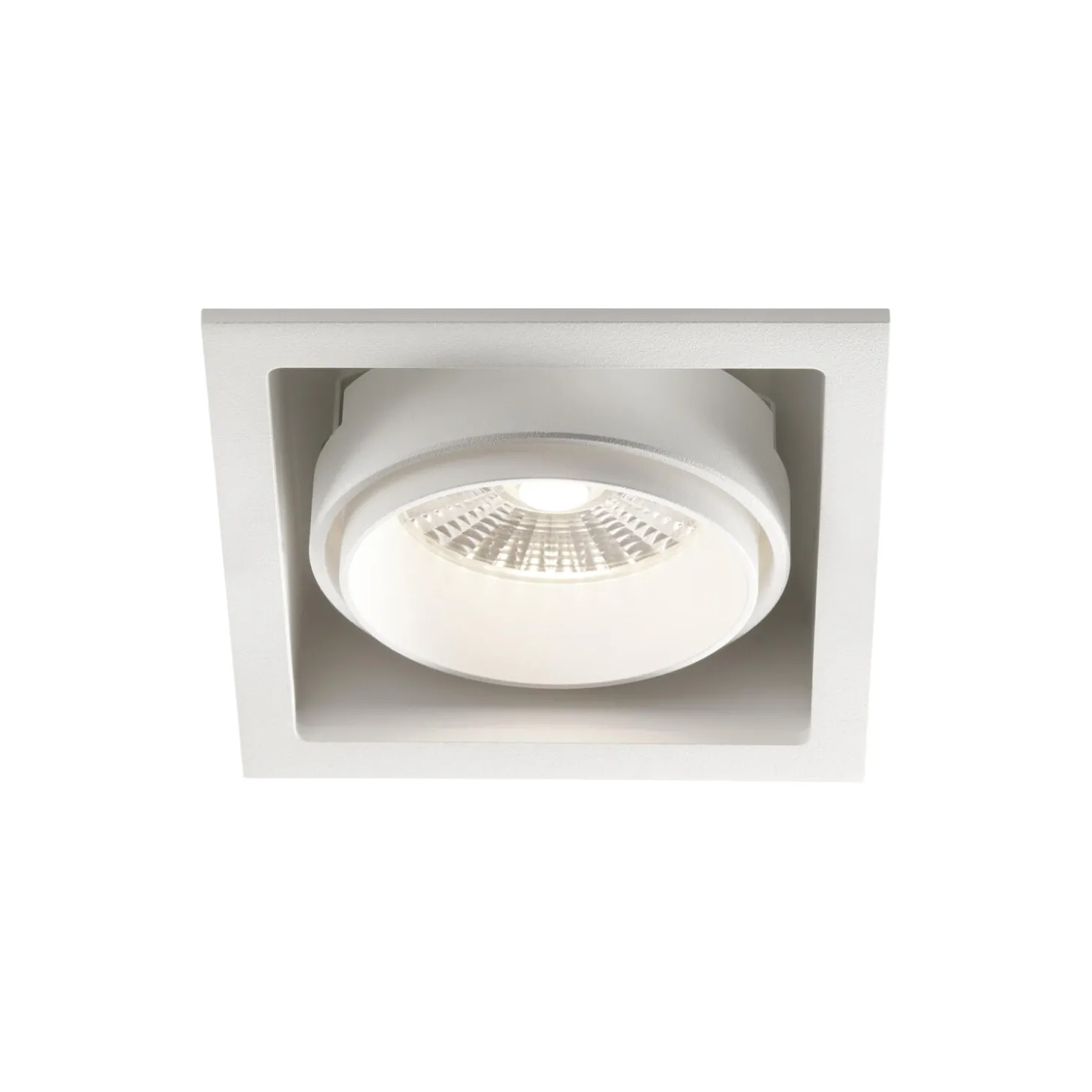 GHOST+ 1 loftspot i aluminium og glas fra LIGHT-POINT. Farve: hvid. Mål: H: 6,5 x L: 13,4 x B: 13,4 cm. Lyskilde: 10W LED. IP20. 3000K. Til indbygning i væg/loft. 180° drejbar spot. Kan tilsluttes lysdæmper og anbefales kun til indendørs brug. Design: Ronni Gol.