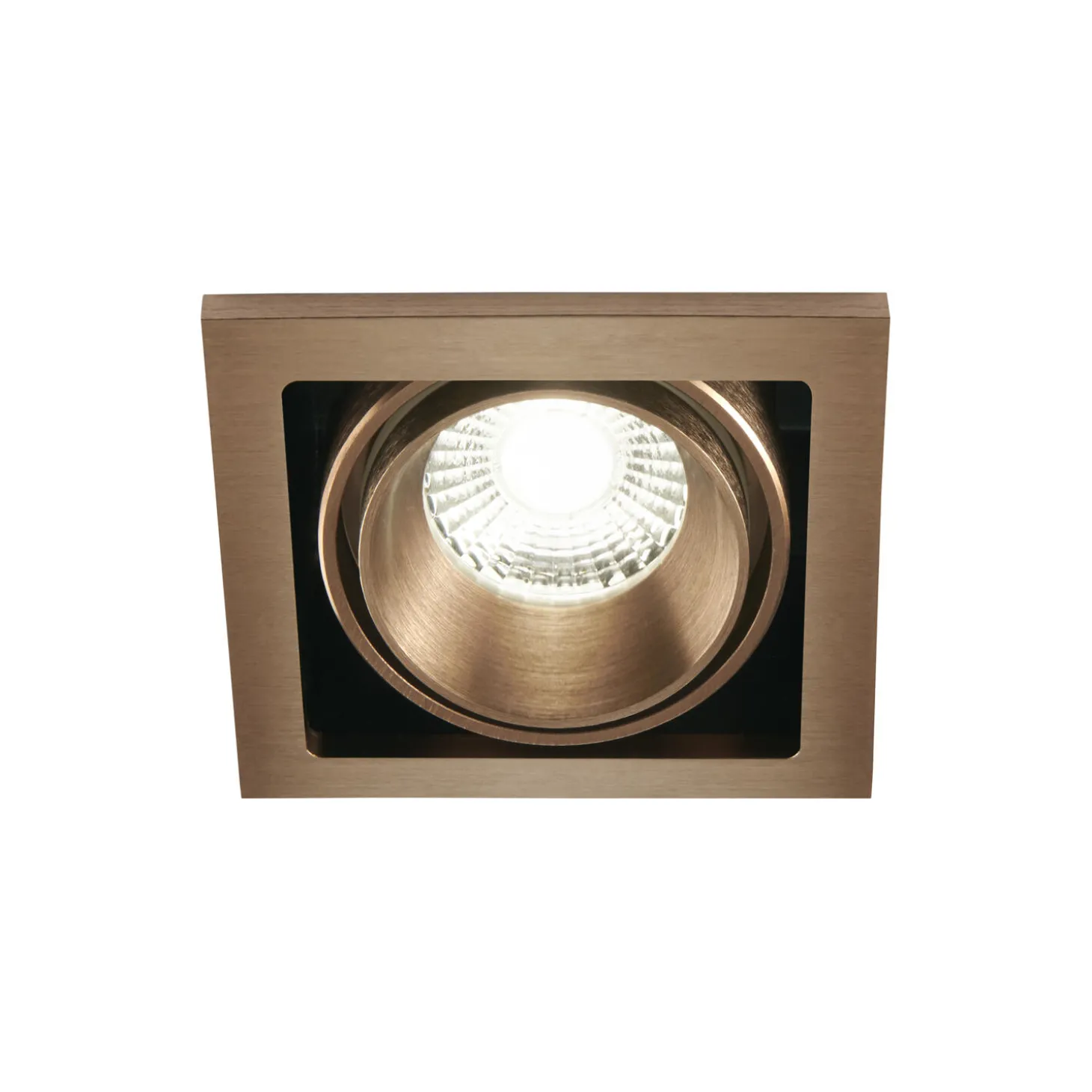 GHOST+ 1 loftspot i aluminium og glas fra LIGHT-POINT. Farve: rose gold. Mål: H: 6,5 x L: 13,4 x B: 13,4 cm. Lyskilde: 10W LED. IP20. 2700K. Til indbygning i væg/loft. 180° drejbar spot. Kan tilsluttes lysdæmper og anbefales kun til indendørs brug. Design: Ronni Gol.